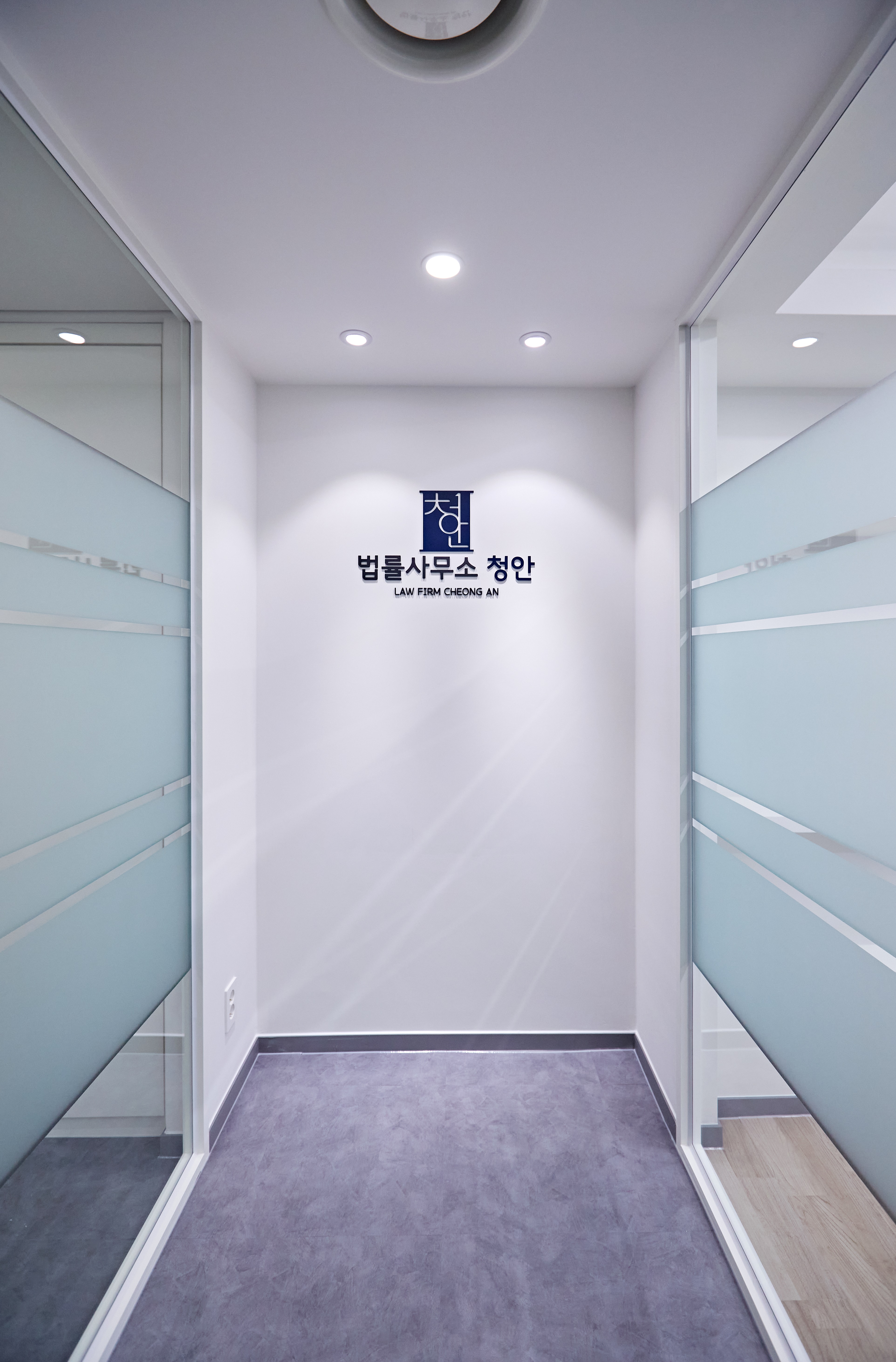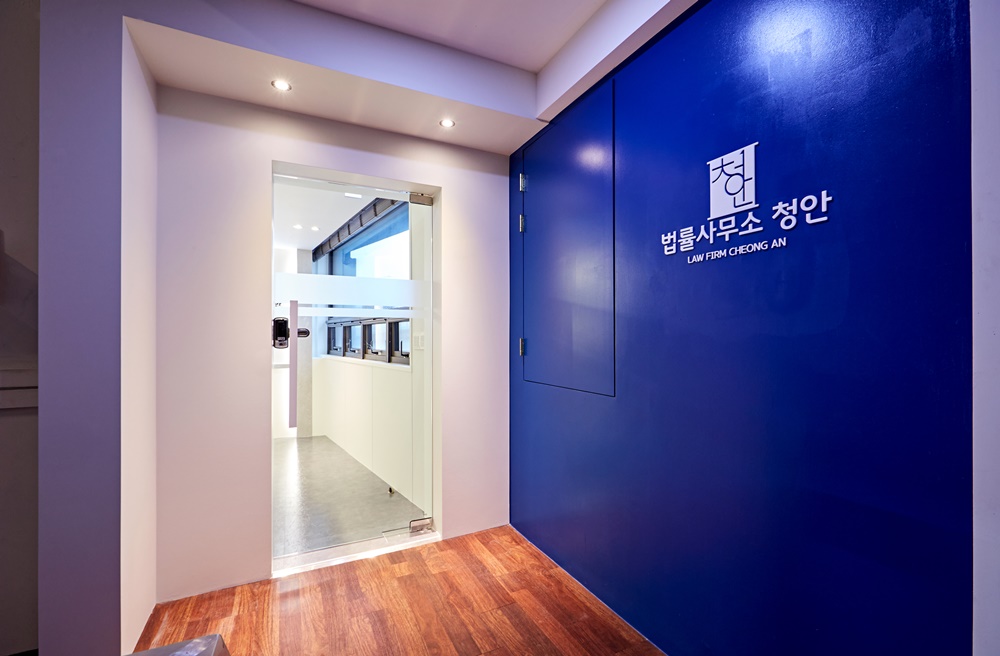 오피스의 얼굴이라 할 수 있는 파사드와 입구를 살펴보면, 강렬한 딥블루 컬러가 법무법인으로서의 신뢰감과 무게감을 단번에 전달하는데요.