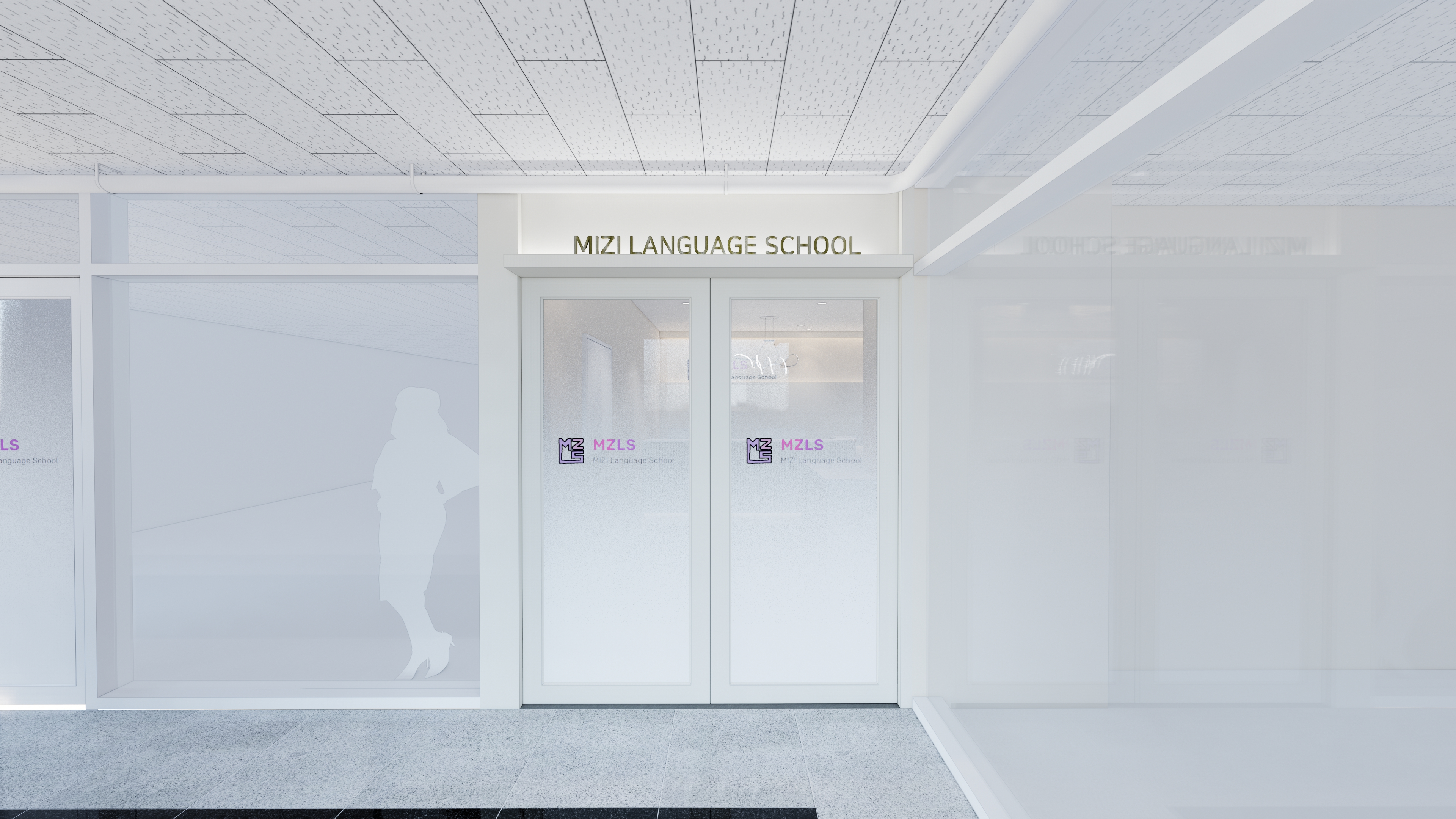 들여다보이는 통유리 문으로 수평적인 학원