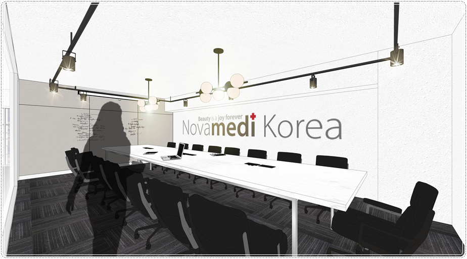 레일조명을 자체만으로 인테리어 효과가 있어 꼭 촬영스튜디오가 아닌 카페, 갤러리, 주거시설, 사무실 등에 많이 시공되고 있는 아이템이므로 서영 아너시티2 아이에스인터내셔날 회사 사무실인테리어에도 반영해보시면 멋진 공간을 만들 수 있습니다.