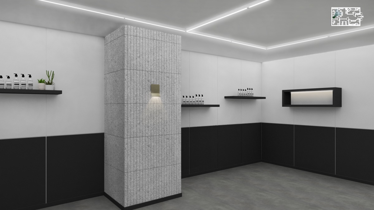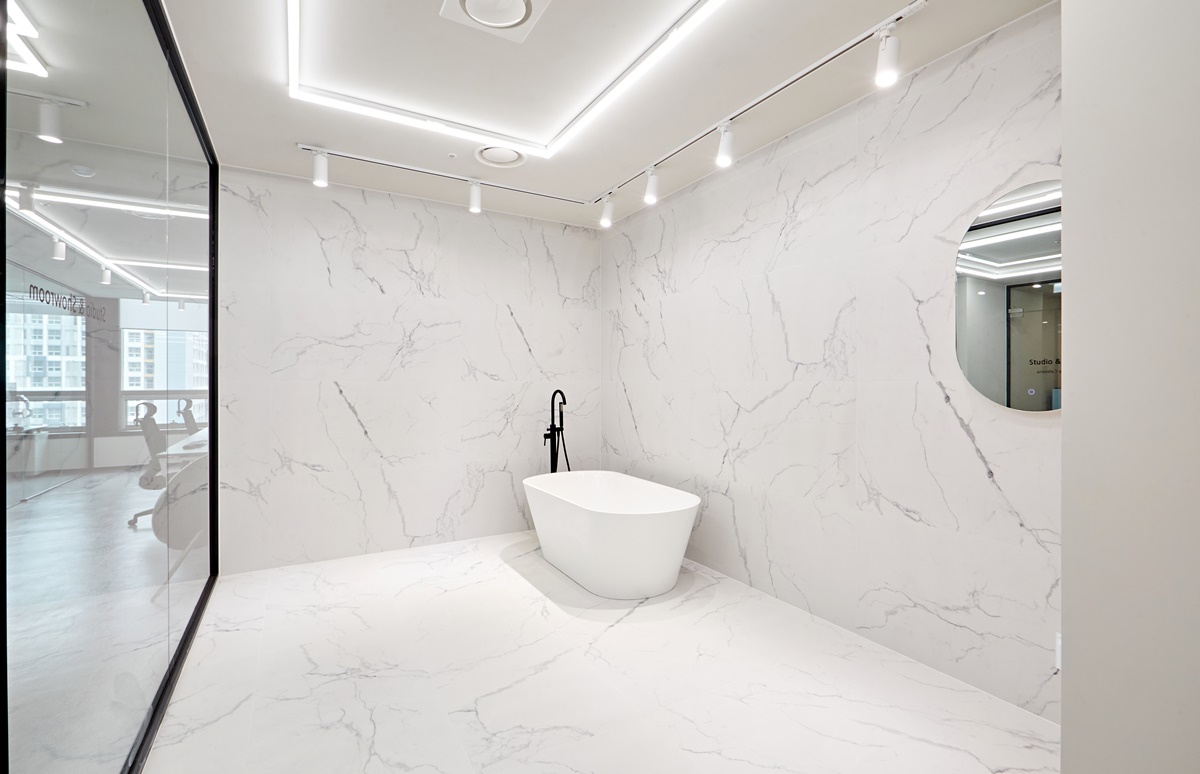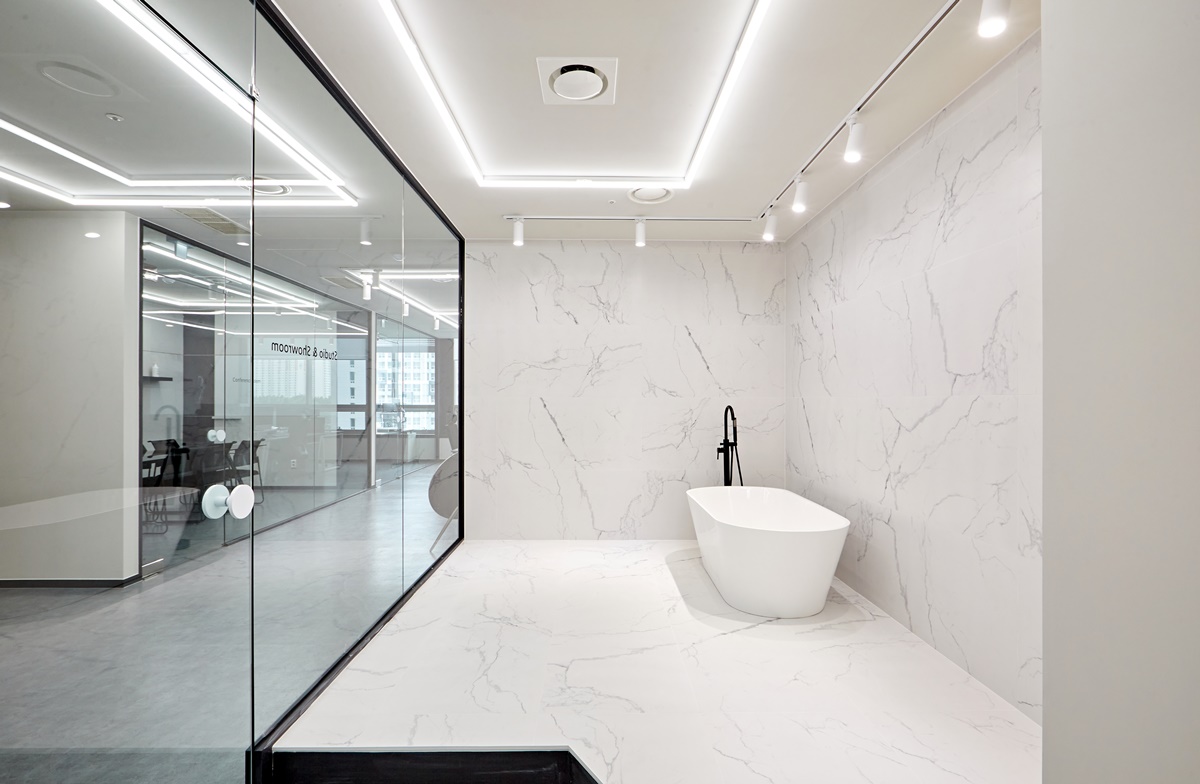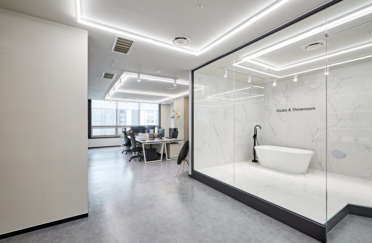 이러한 전략을 구현하면 쇼룸 스튜디오 사무실 내부가 실제보다 더 크고 개방적으로 보이는 세련된