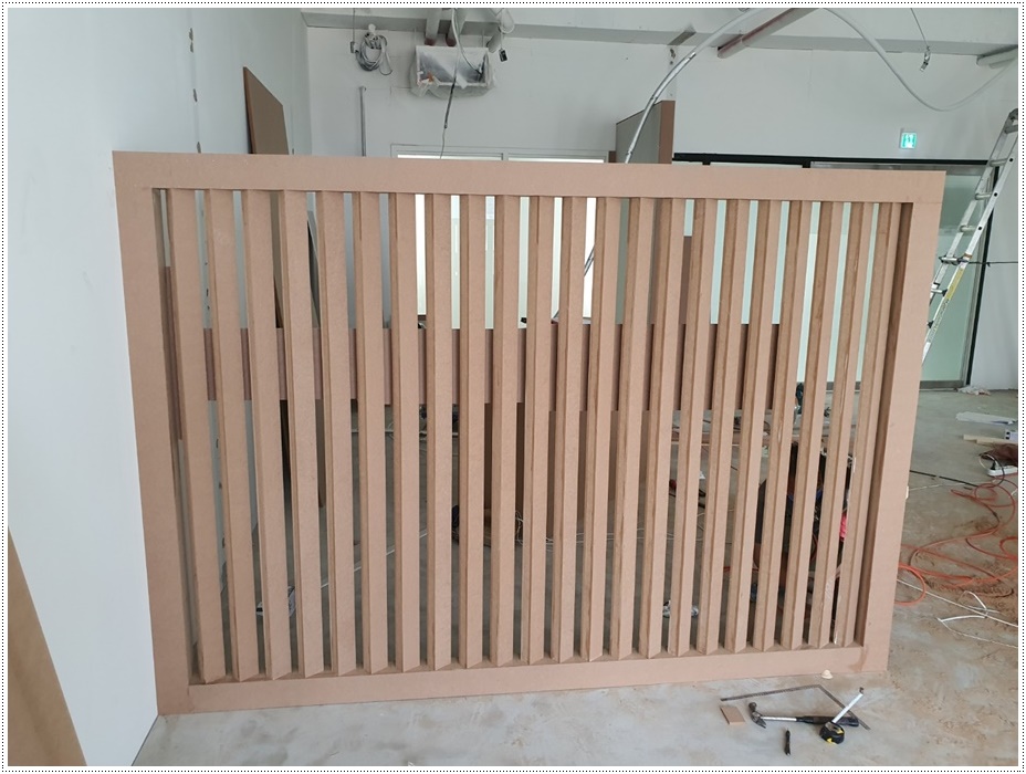 그래서 916디자인은 모든 공정에 전문가를 투입해 꼼꼼하고 완벽한 시공을 진행함으로써 일하기 좋고 머무르고 싶은 공간을 만들어드리고 있습니다. 한 프레임 한프레임 조립하고 한 칸 한 칸 장인의 손길로 만들어진 간살 가벽만 봐도 얼마나 디테일하게 작업을 진행하고 있는지가 느껴지네요.