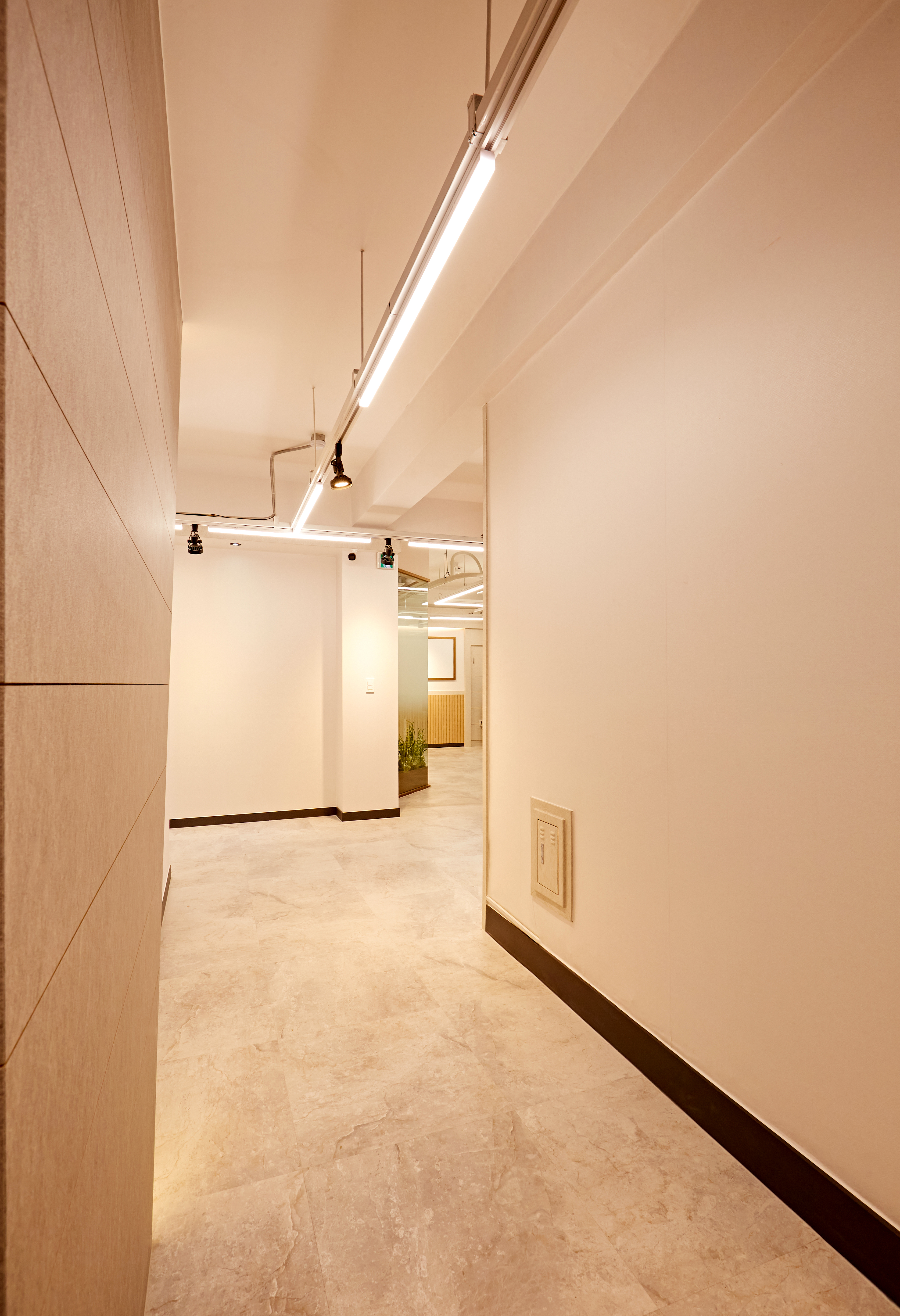 복도 중앙 부분에는 사선 형태의 간접 조명