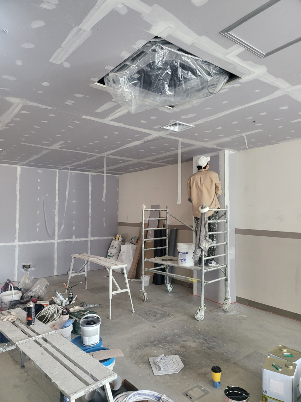 공정이 이루어지고 있으며 중간에 하자가