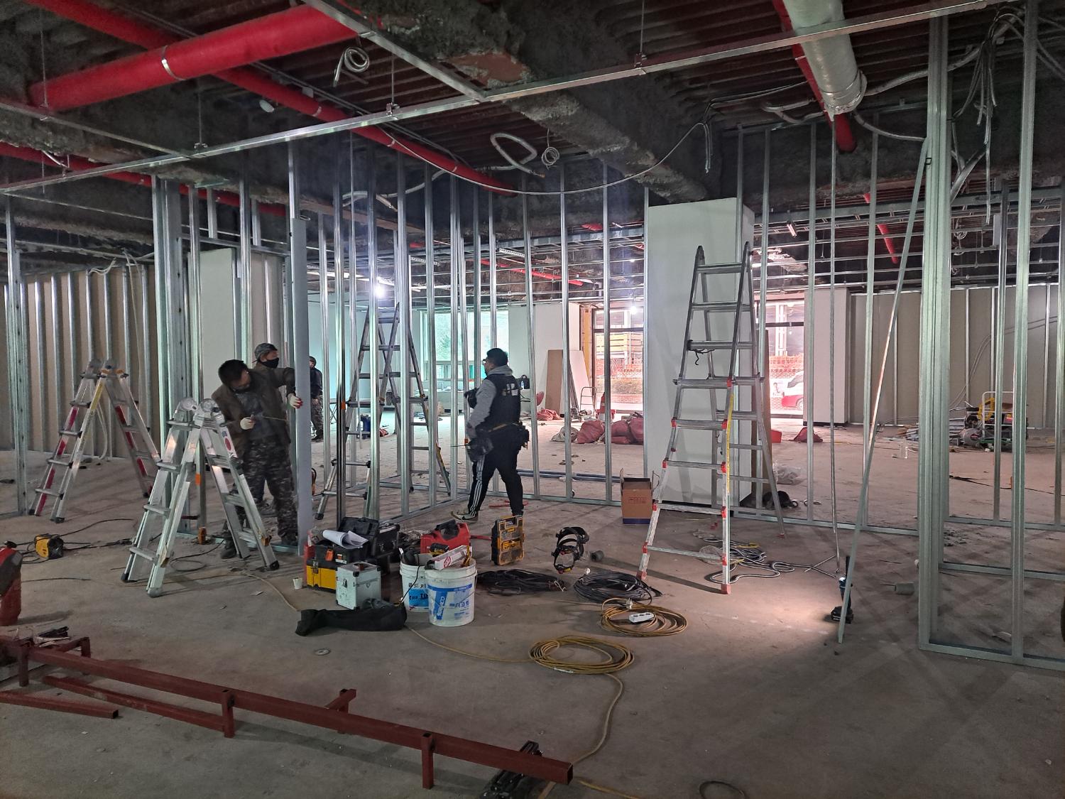 기초 설비작업부터 진행했습니다. 기존 구조에서 변경을 하는 경우에는 소화전,스프링쿨러 이전까지 꼼꼼하게 확인하여