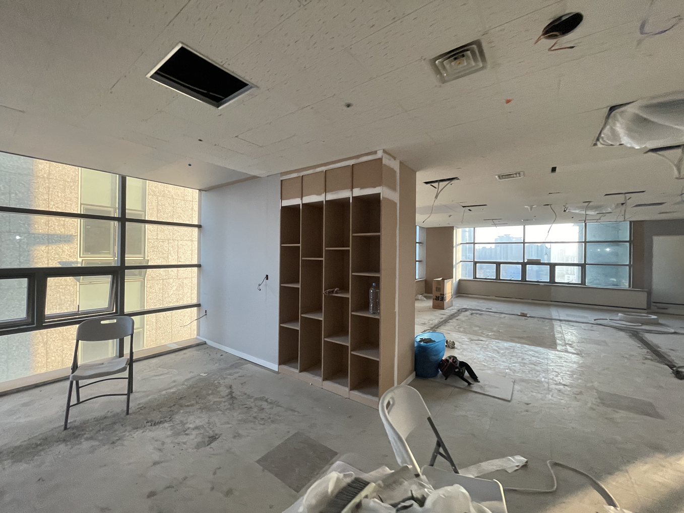 우선, 업무 공간과 휴식 공간을 분리하기 위해 가벽을 설치했습니다.