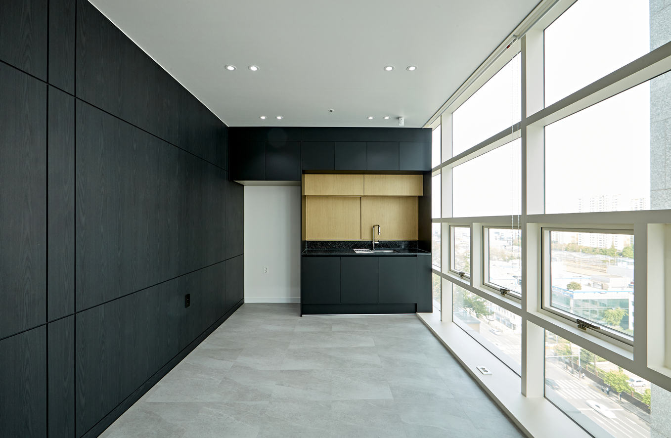 마지막으로 외부 파사드는 블랙 컬러로 마감하여 도시적이면서도 세련된 효과를 주었습니다.