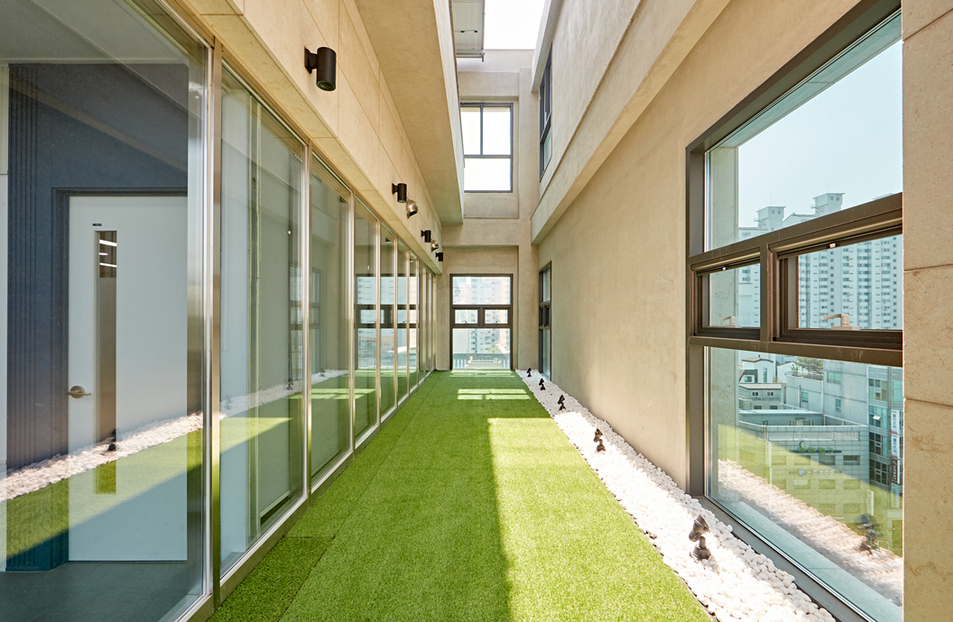 따라서 교실과 휴게 공간을 적절히 분리하여 학생들이 공부와 휴식을 적절히 조절하였습니다.