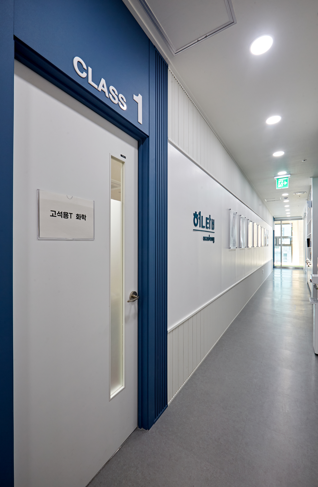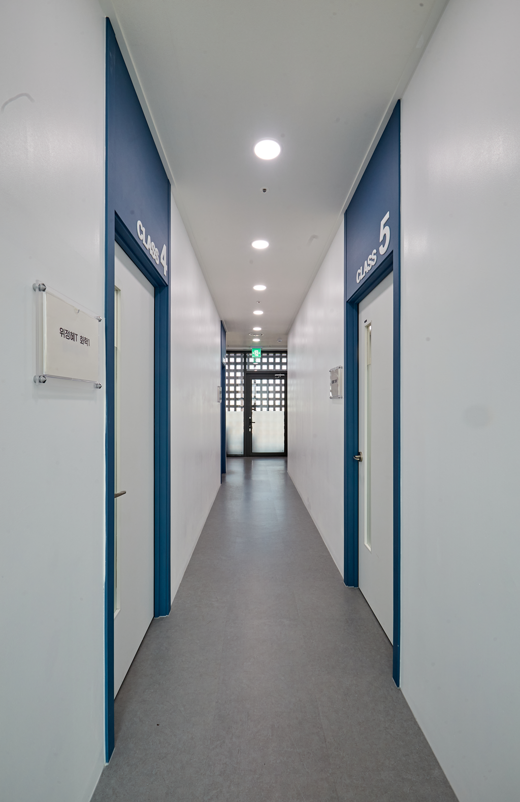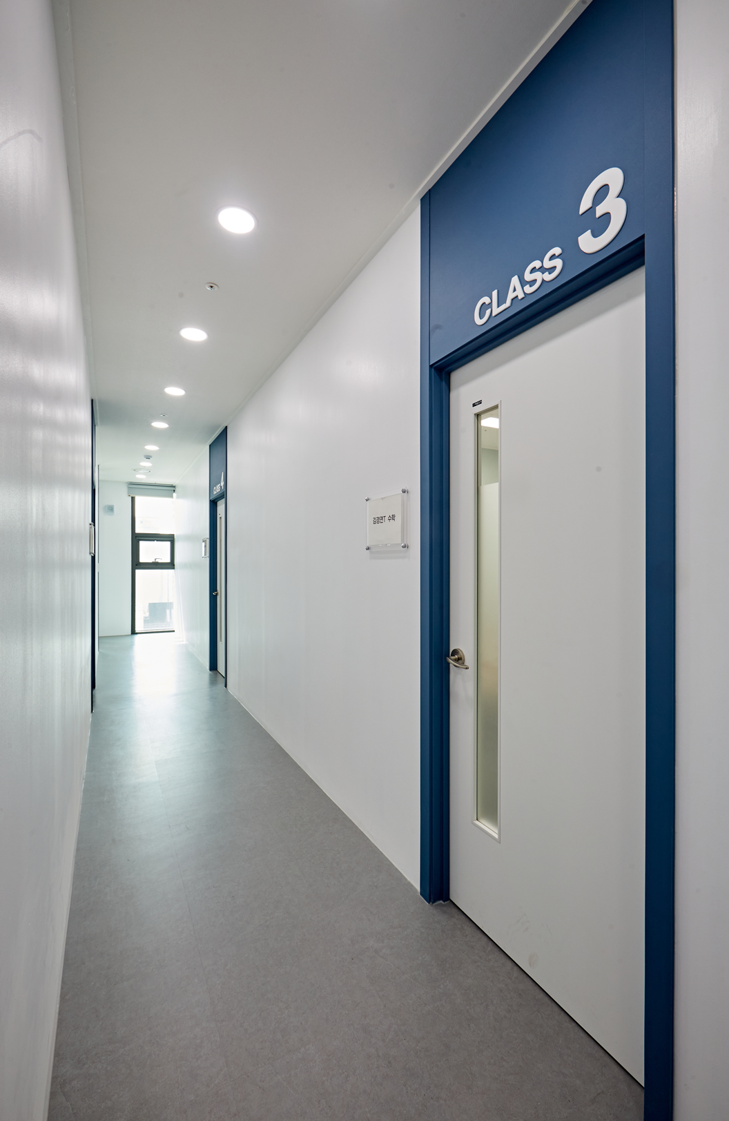 각 교실마다 푸른계열의 색상을 적용하여 학생들이 지루하지 않고, 다양한 감정을 느끼며 학습할 수 있도록 하였습니다.