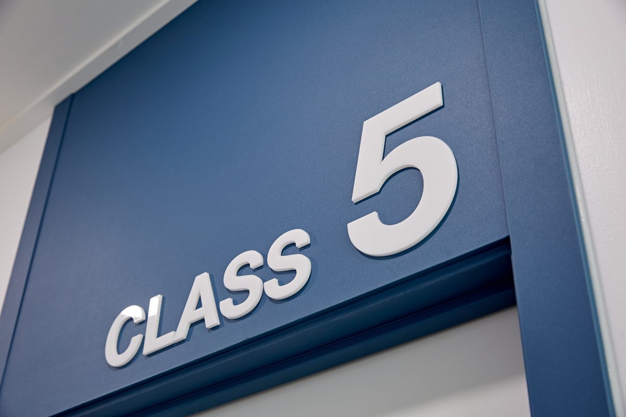 공간 내 각 강의실마다 문 입구 상단에 강의실 이름을 표시하는 사인물을 설치해