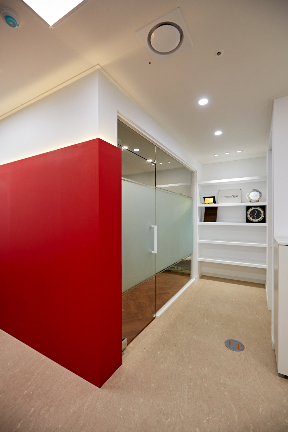 레드 컬러가 포인트로 사용된 만큼 복도에는