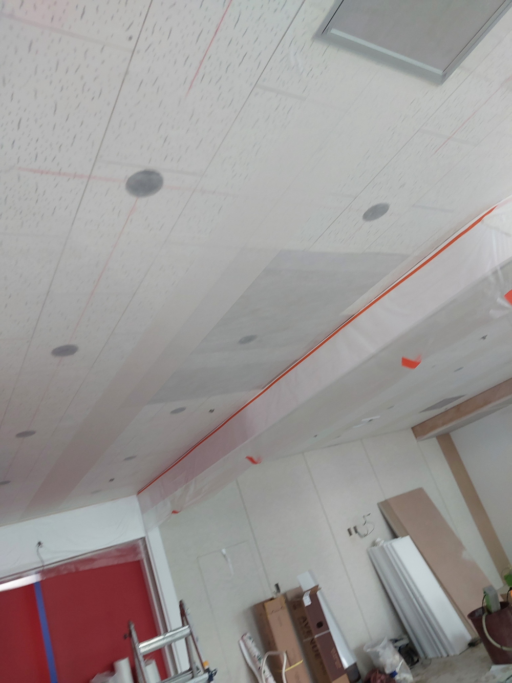 목공 작업으로 공간을 구분해주고 천장도