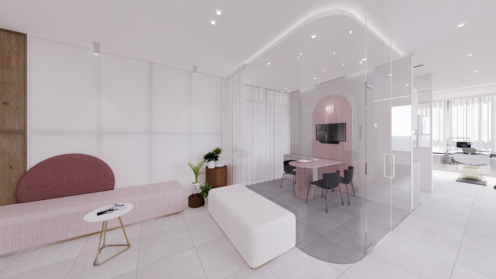 핑크 포인트가 있는 아늑한 대기실에서 환자가 긴장을 풀고 진료실로 이동하는 동안에는, 편안한 분위기가 유지되도록 해야 해요.