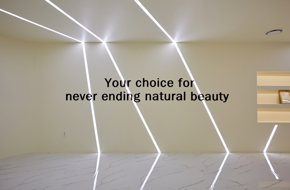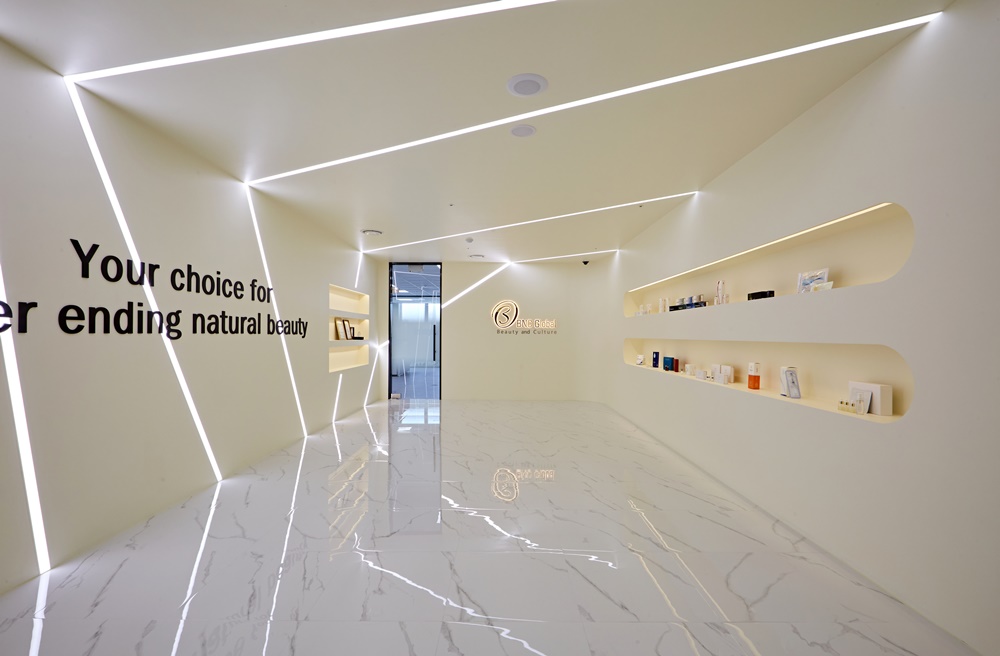 특히 'Beauty & Culture'라는 브랜드 슬로건이 자연스럽게 느껴질 수 있도록 전체적인 톤은 화이트와 베이지를 중심으로, 포인트로는 라인 조명과 우드 파티션을 더해 감감적인 분위기를 완성시켰죠.