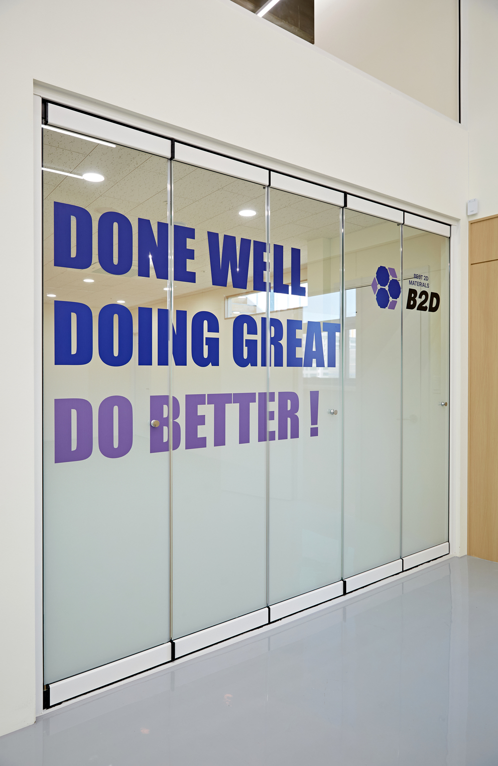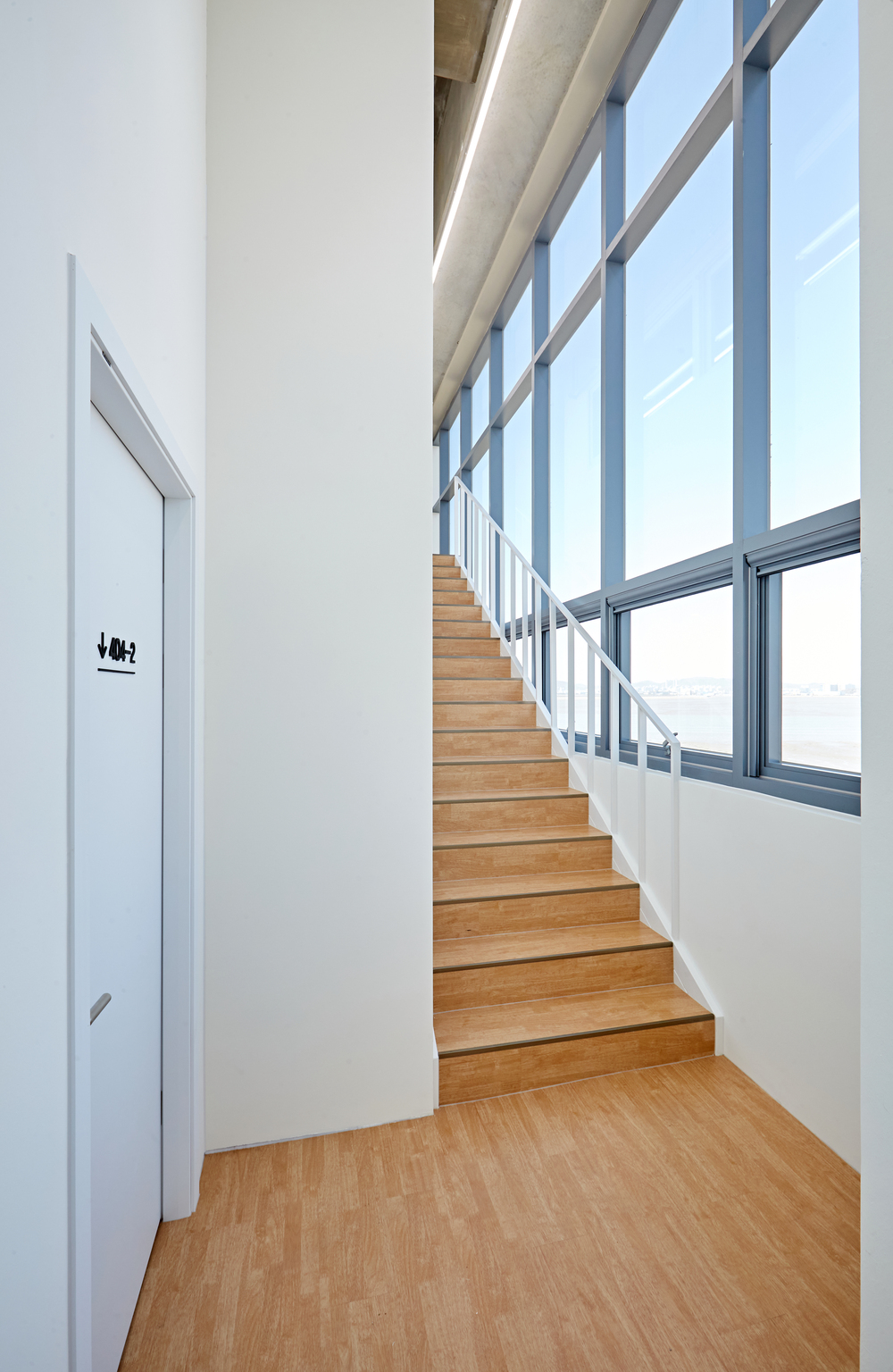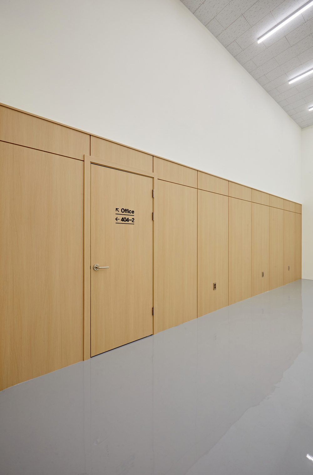 들어가면 천고가 높은 공간이 나오고, 실험실이라는 의미를 담고 있지만 전체 사무실을 뜻하기도 합니다. 그리고 이번 현장에는 각 공간으로 가는 곳마다 표시가 되어져 있으며, 마찬가지로 라이트우드 소재로 통일하였는데요. 그리고 천장이 높다보니 전체적으로 뻥 뚫려보이는 개방감이 대단합니다.