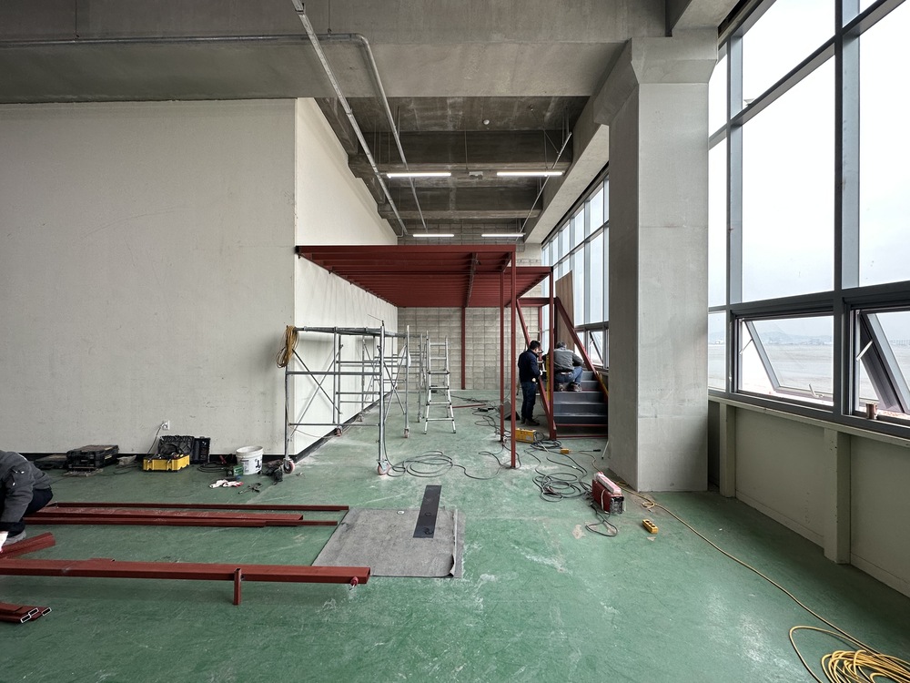2층으로 올라가는 길입니다. 계단도 역시 바닥과 소재를 통일하여서, 이번 성수동 CF타워 지식산업센터 인테리어 현장은 대체적으로 산뜻하면서도 아늑한것이 메인 컨셉이라는 걸 아실 수 있을텐데요.