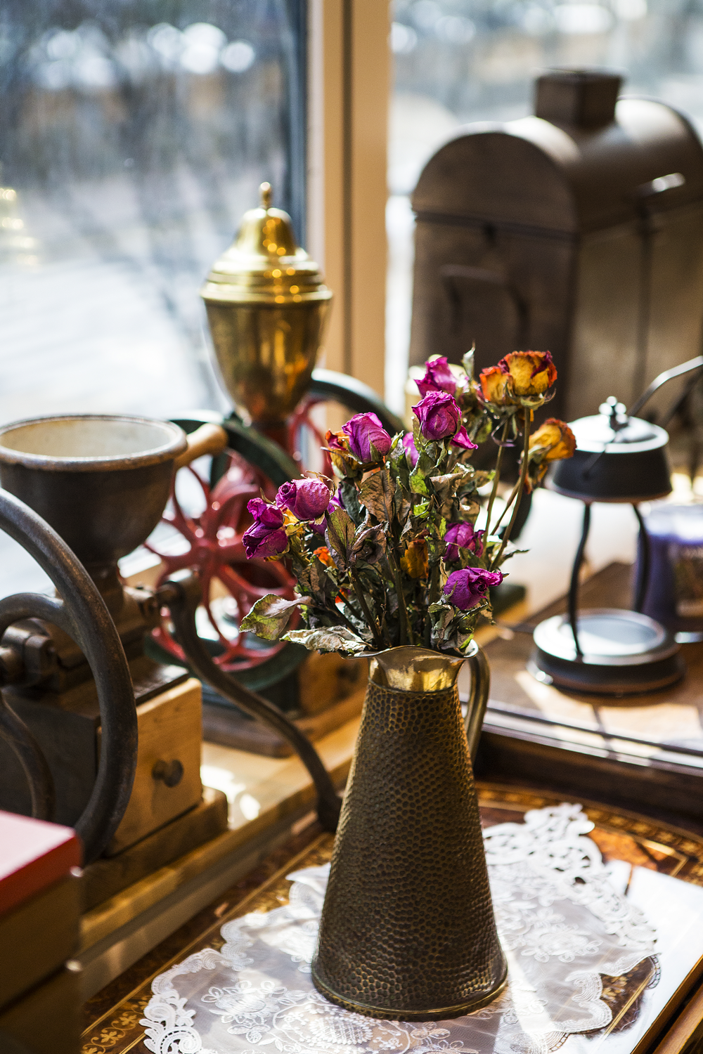 또한 각종 커피 도구들, 예를 들어 핸드밀, 프렌치 프레스 같은 다양한 툴들을 진열해 두면 더욱 아늑한 분위기를 조성할 수 있습니다.