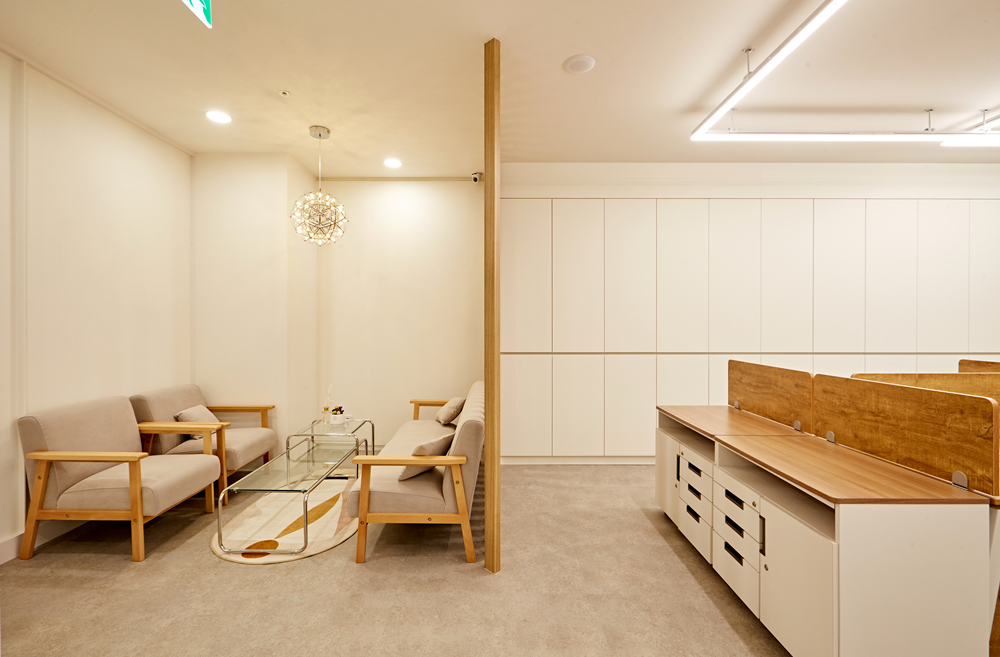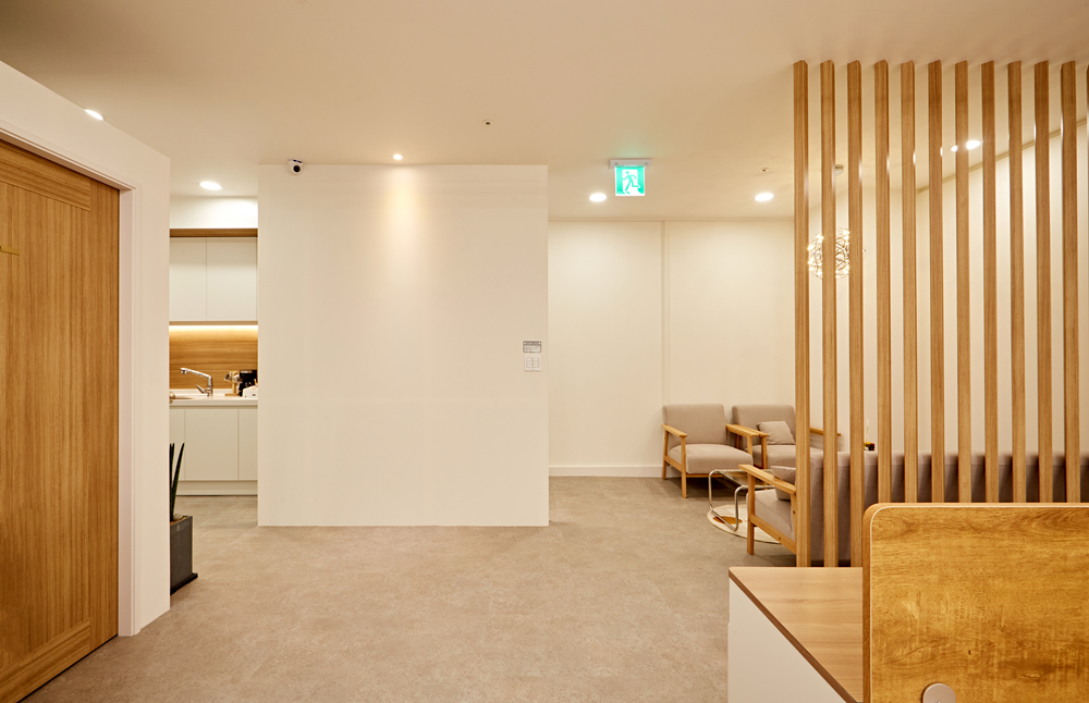 화이트 컨셉에 우드컬러로 포인트를 주어 편안하면서도 신뢰감을 줄 수 있는 분위기로 완성되었는데요.