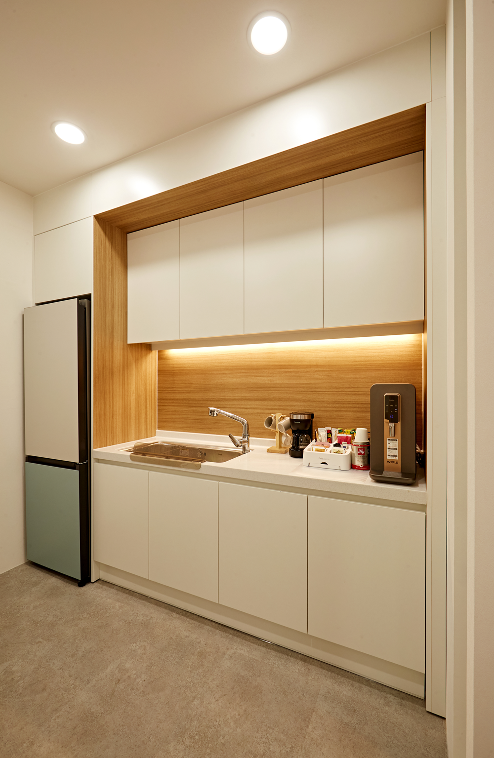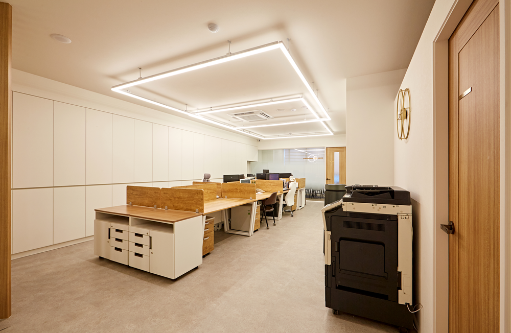 회의실, 휴게실, 탕비실 등의 공용 공간도 적절히 활용하여 직원들의 업무 효율과 만족도를 높입니다.