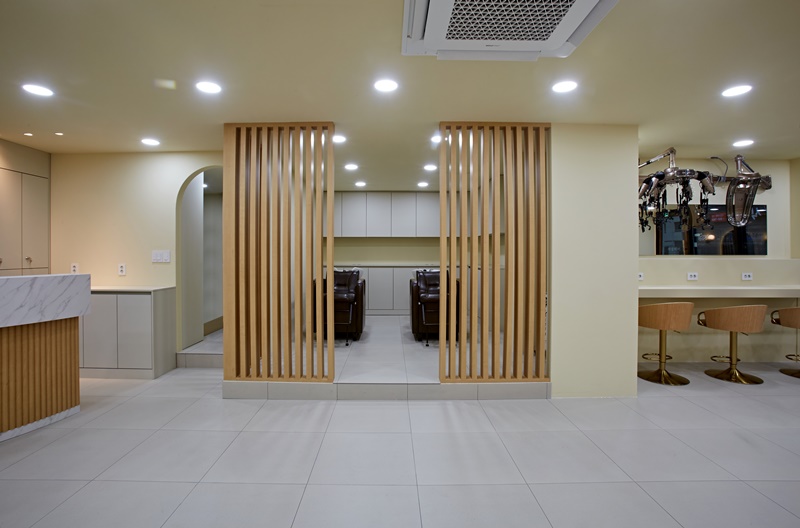 그래서 전체 분위기를 시술존보다 한 톤 낮추고 조명 또한 눈부심 없는 간접등 중심의 조도 설계로 완성했습니다.