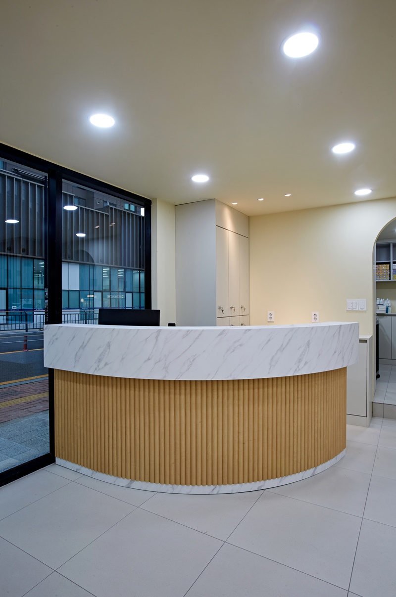 시술대 주변은 최소한의 가구와 장비만 배치해 시각적인 여백감을 주었으며 바닥은 물청소에 강한 논슬립 마감재를 적용해 관리가 용이합니다.