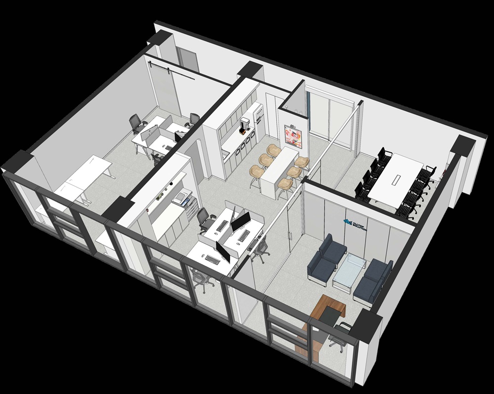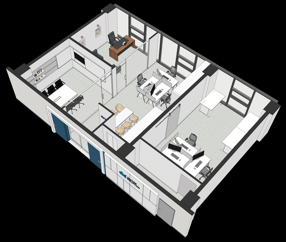 먼저 살펴볼 사진은 소형사무실인테리어 3D 디자인 및 아이소 이미지입니다.