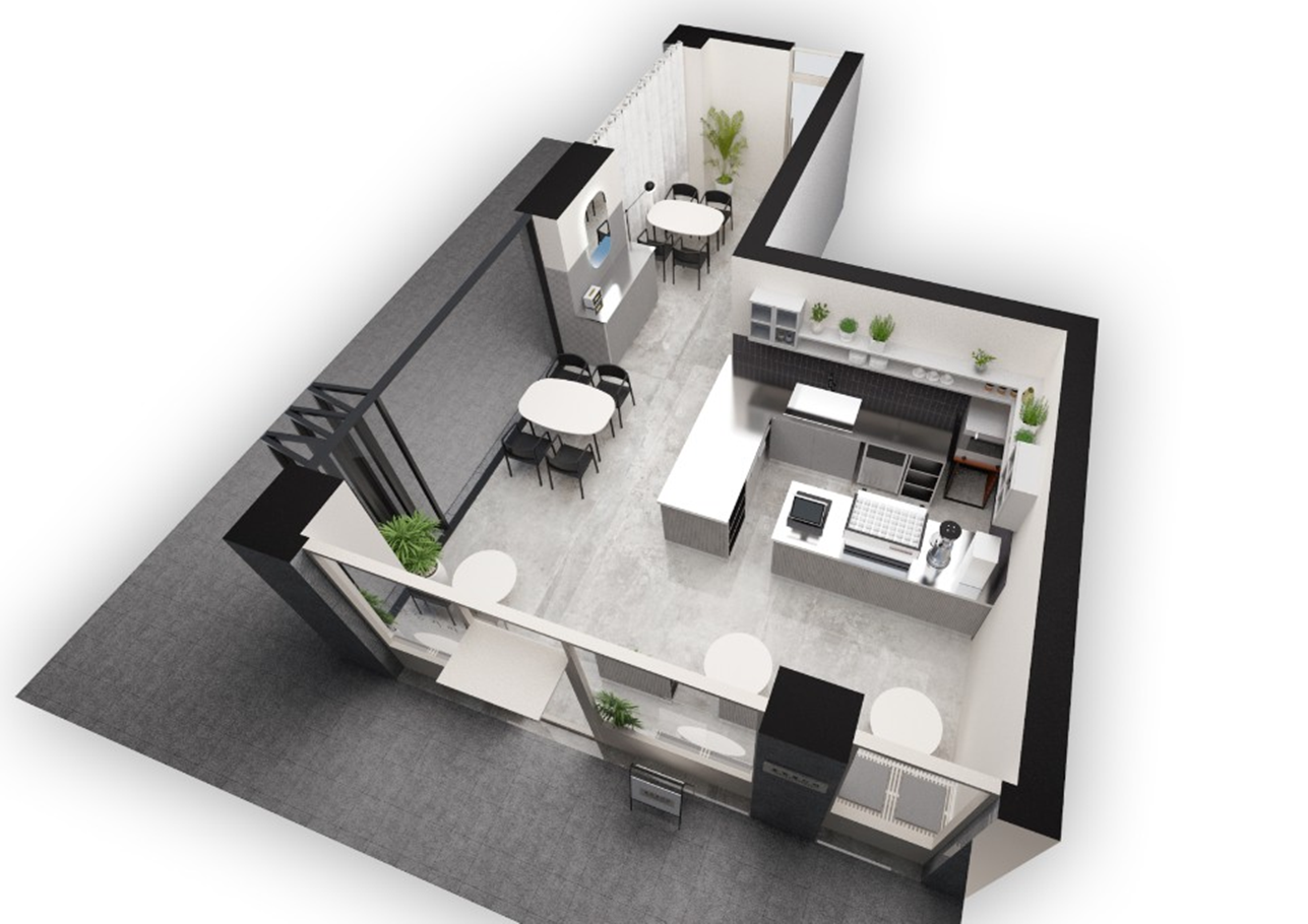 소형카페인테리어 3D 디자인 설계입니다. 작은 공간에서 큰 인상을 만드는 것은 디자인의 집중력과 시공의 완성도에 달려 있습니다. 이번 프로젝트는 한정된 면적에서 고객 동선, 바리스타 동선, 설비 설치를 효율적으로 녹여내면서도 브랜드 톤을 명확히 보여주는 것을 목표로 디자인하였습니다.