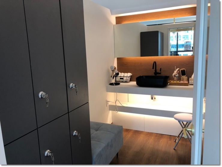 매장 안쪽에 위치하고 있는 작은 탈의실 및 파우더룸입니다. 공간 특성에 맞게 넉넉한 수납장을 넣어 드려 실용적이게 사용하실 수 있도록 설계하였습니다. 안쪽 파우더룸은 벽면에 우드 컬러를 넣어 디자인하였으며 가운에 거울을 넣고 위아래 간접조명을 레이아웃으로 잡아 아늑한 분위기를 보여주고 있습니다.