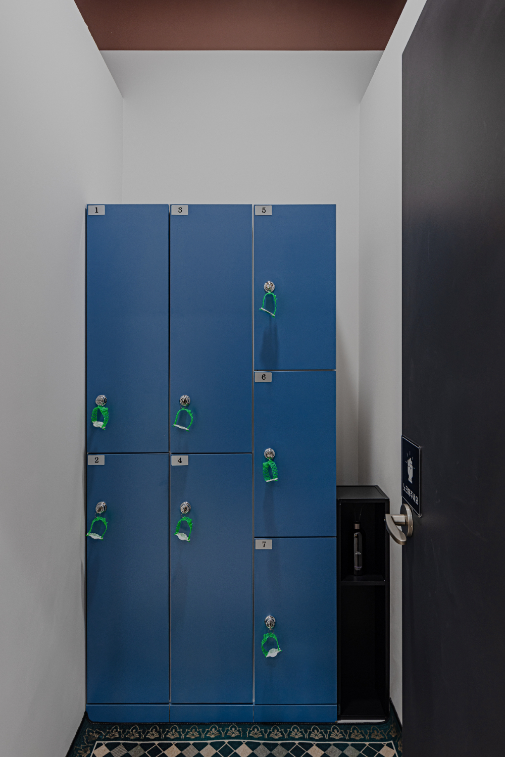 탈의실은 블루 컬러로 포인트를 주어