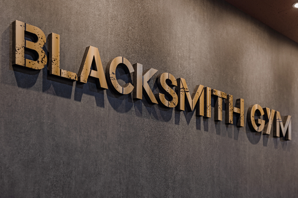 벽면에는 PT샵 로고 사인물을 넣어 포인트를
