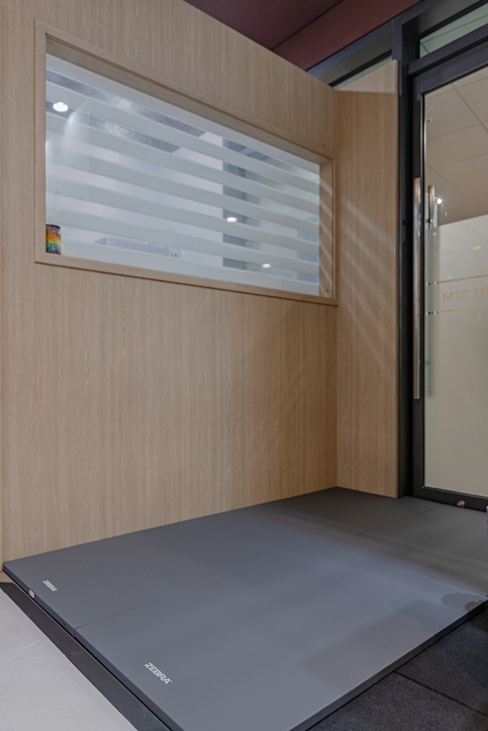 스트레칭 존과 탕비실은 우드 가벽으로