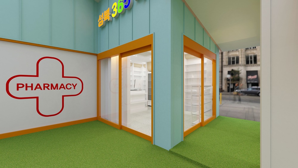 이 약국은 다양한 색채를 조화롭게 배치하여 방문객들의 시선을 사로잡았어요.