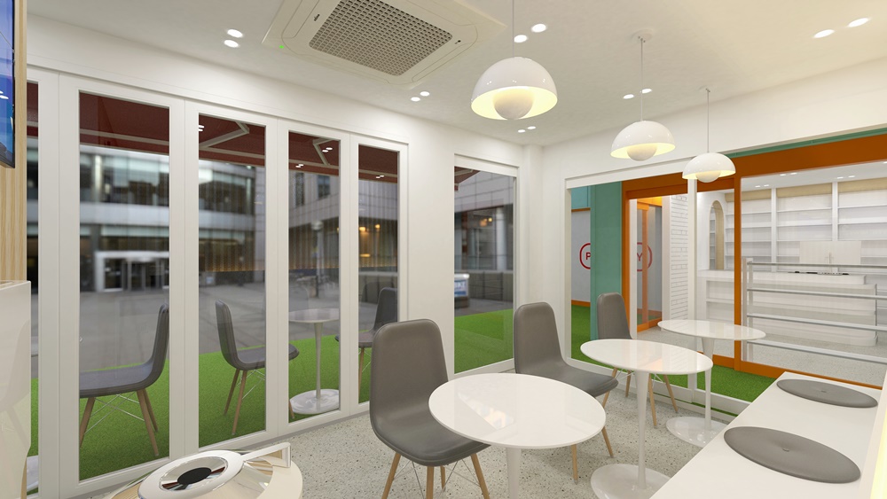 따라서 고객들이 대기를 하는 시간 동안 편안히 앉아서 디지털 기기를 쉽게 사용할 수 있도록 여러 개의 테이블과 의자, 그리고 무료 Wi-Fi를 제공할 수 있도록 했어요.
