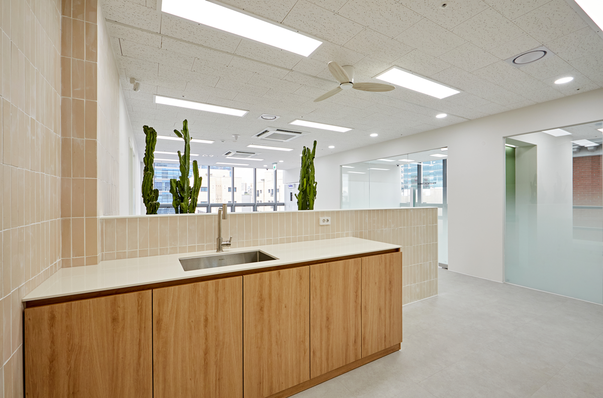 각각의 공간에 어울리는 식물을 선택하고 배치하여 개성 있는 분위기를 연출하면서도 업무 효율성을 높일 수 있도록 고려하였습니다.