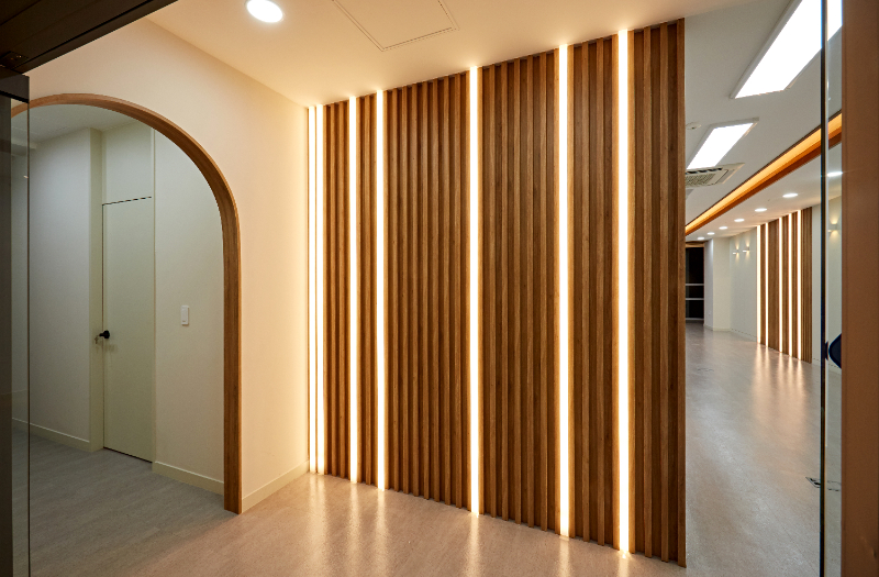 곳곳에 라인 조명을 삽입하여 신비한 분위기를