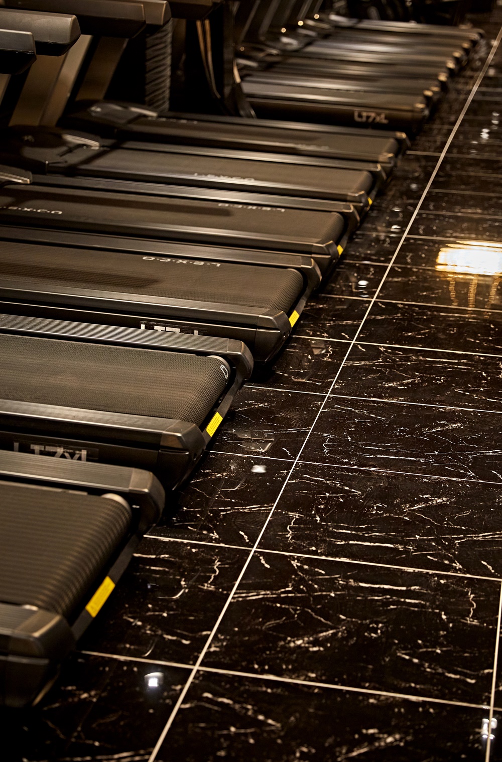 블랙 컨셉을 잘 살리기 위해서는 운동 기구의 디자인과 컬러도 신경 써야 해요.