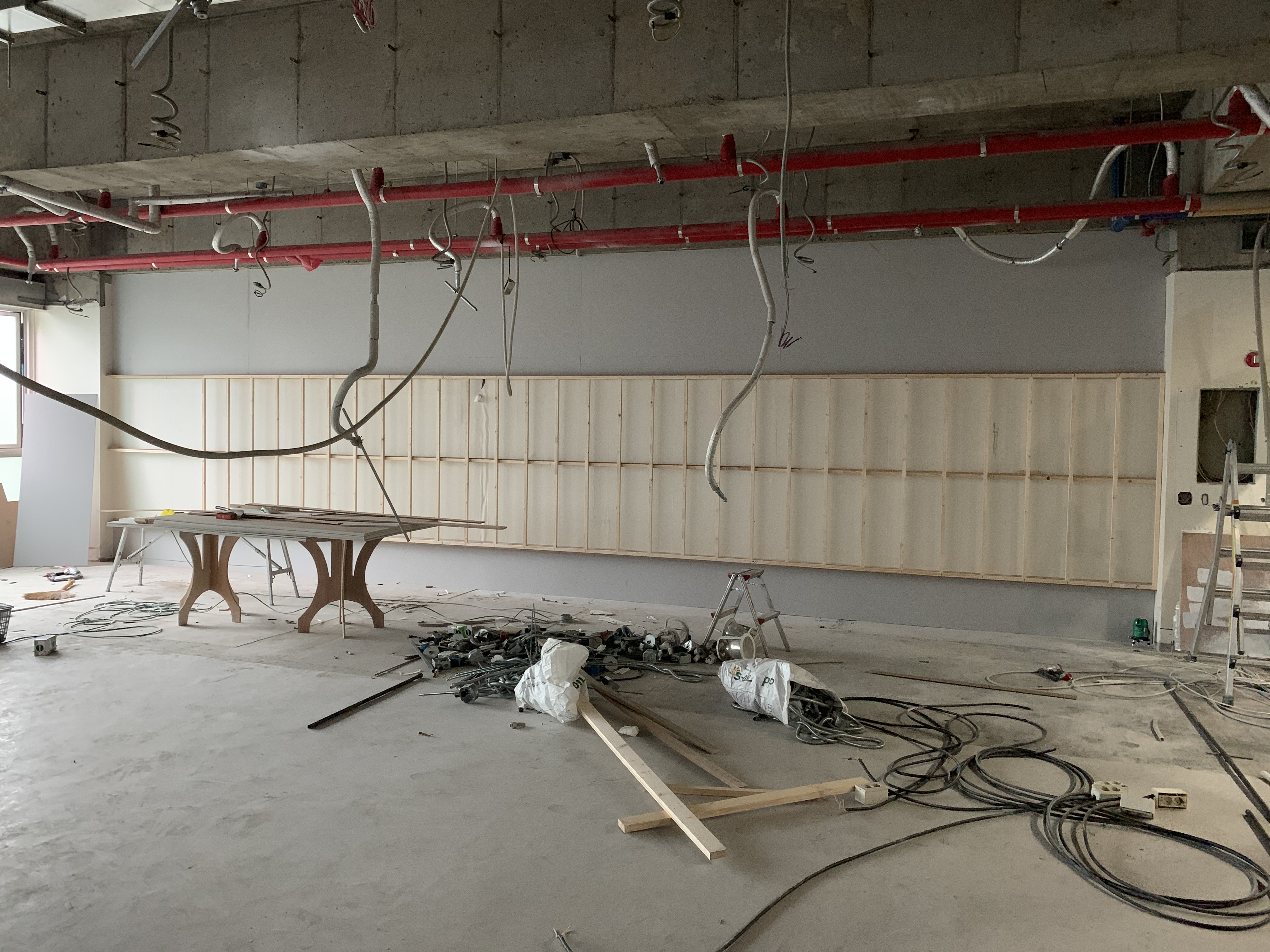 오늘 현장에서는 목공 자재를 먼저