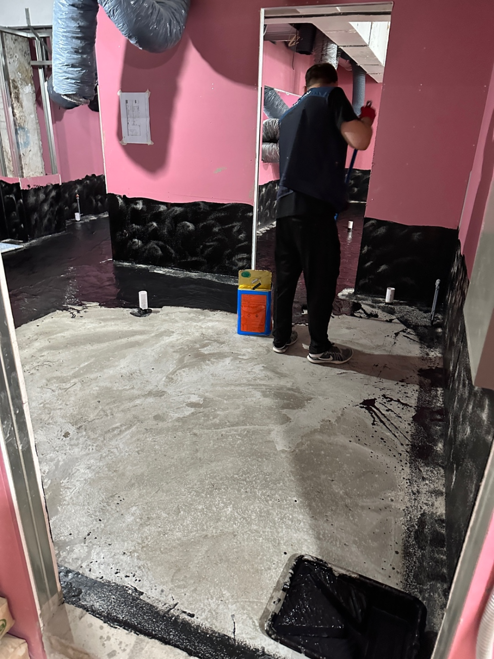 배수시공후에는 방수작업을 진행하고