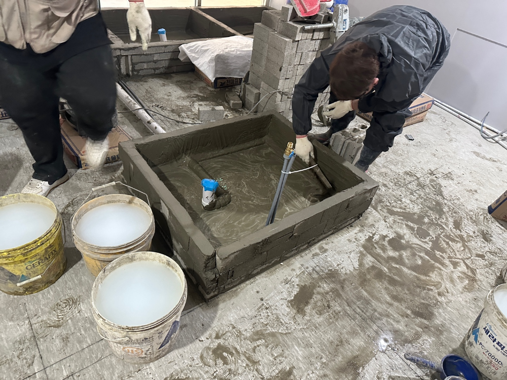 알맞는 비율에 맞춰 방수시공이