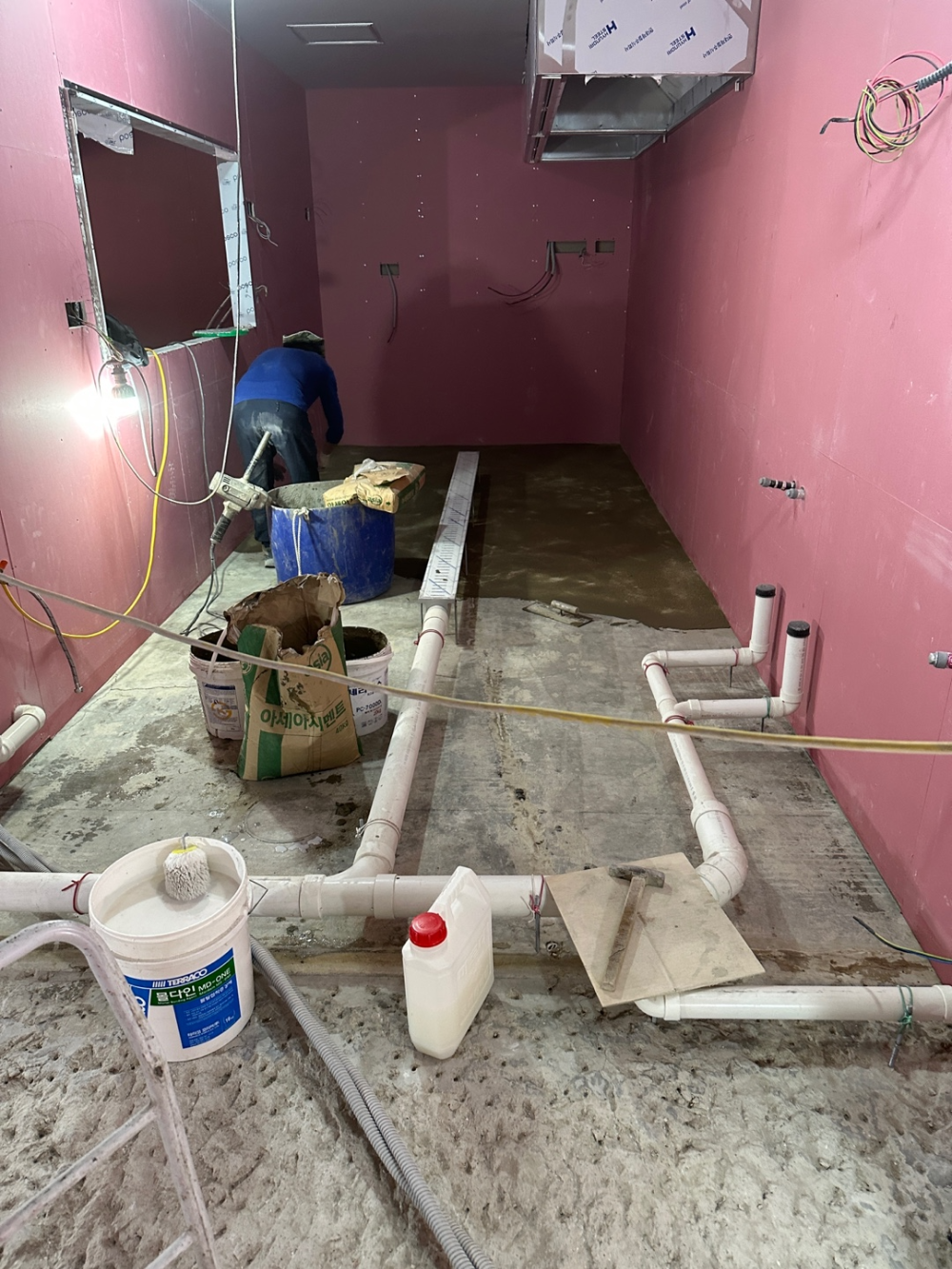 배수배관 , 방수작업이 이루어졌는지