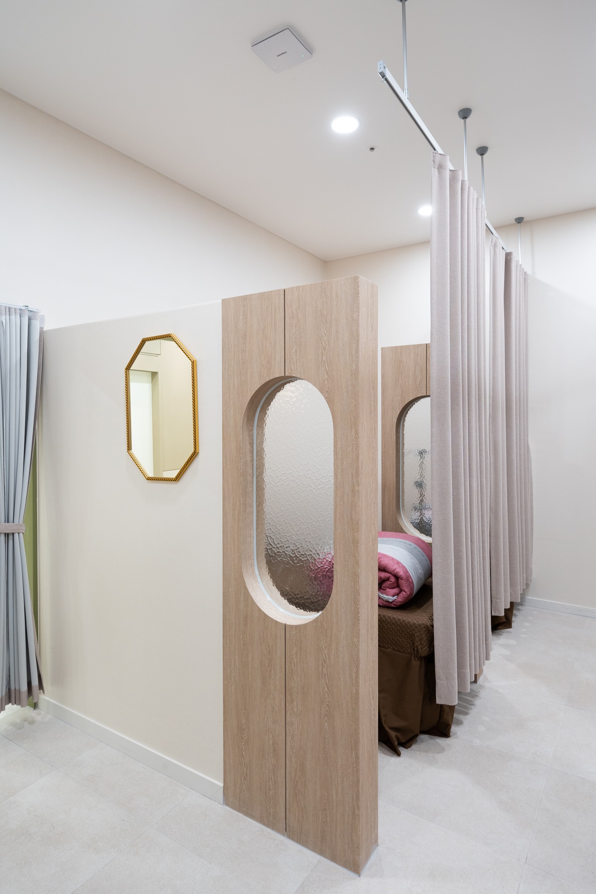 수액실에는 별도의 문을 설치하여 외부와 차단하고, 커틴이나 블라인드를 활용하여 개인 공간을 확보할 수 있습니다.