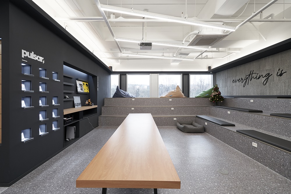탁 트인 공간 덕분에 직원들은 서로 쉽게 눈에 띄고 소리고 잘 들기 때문에 자엽스럽게 소통이 이루어집니다.