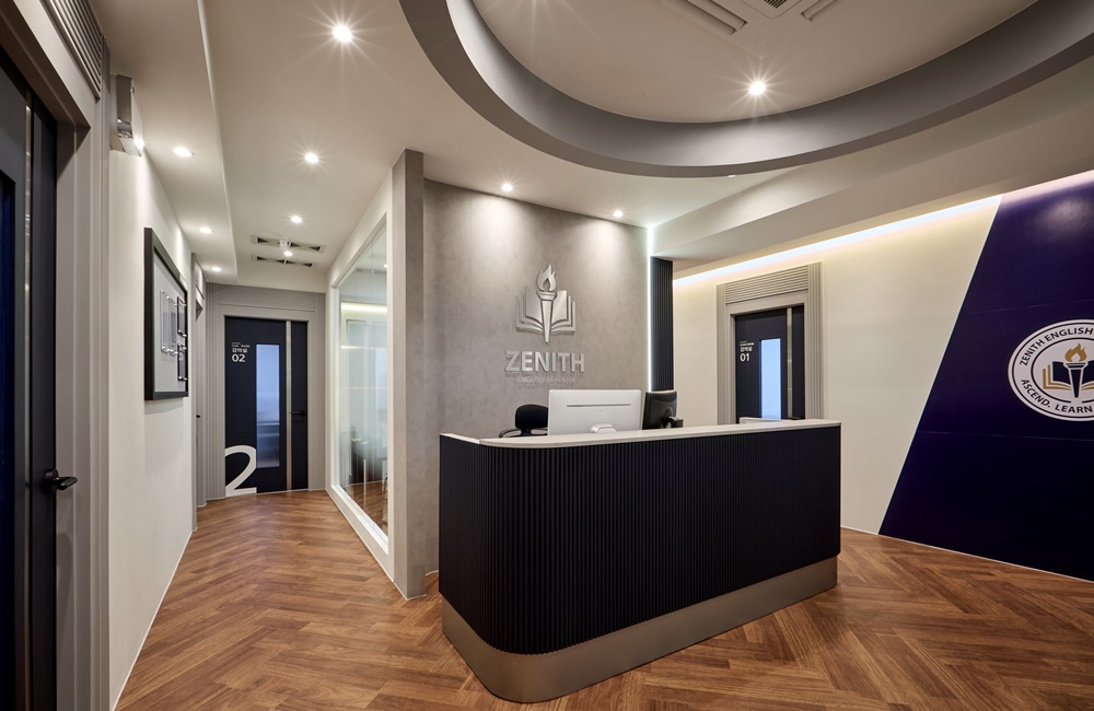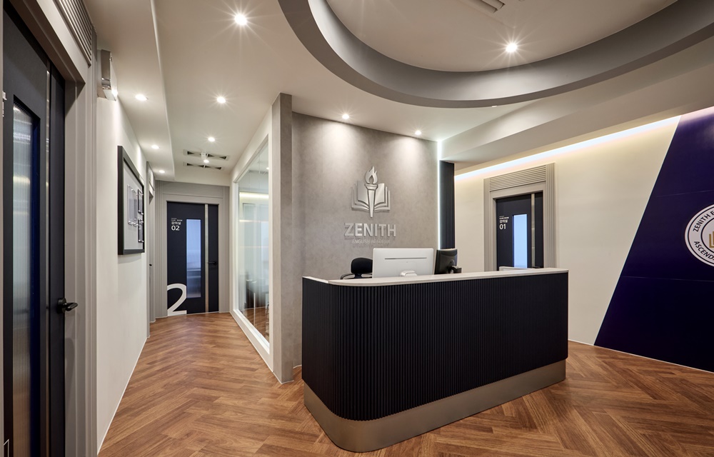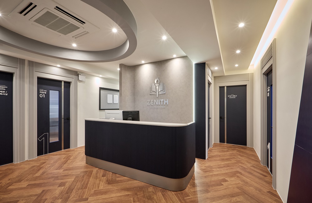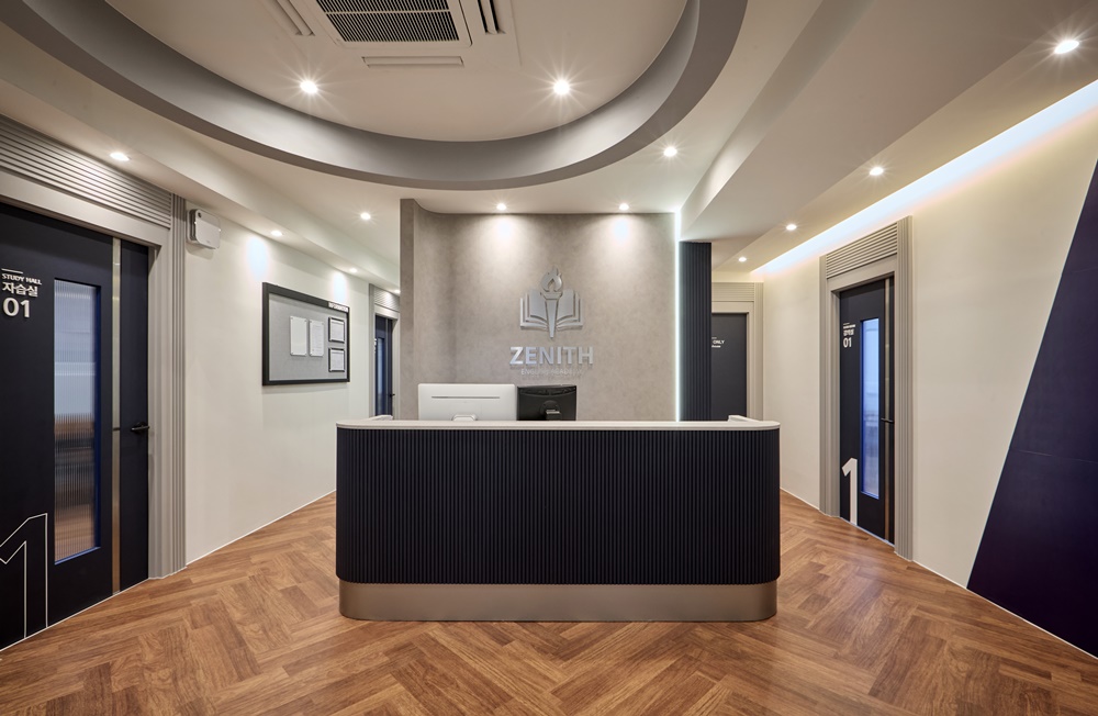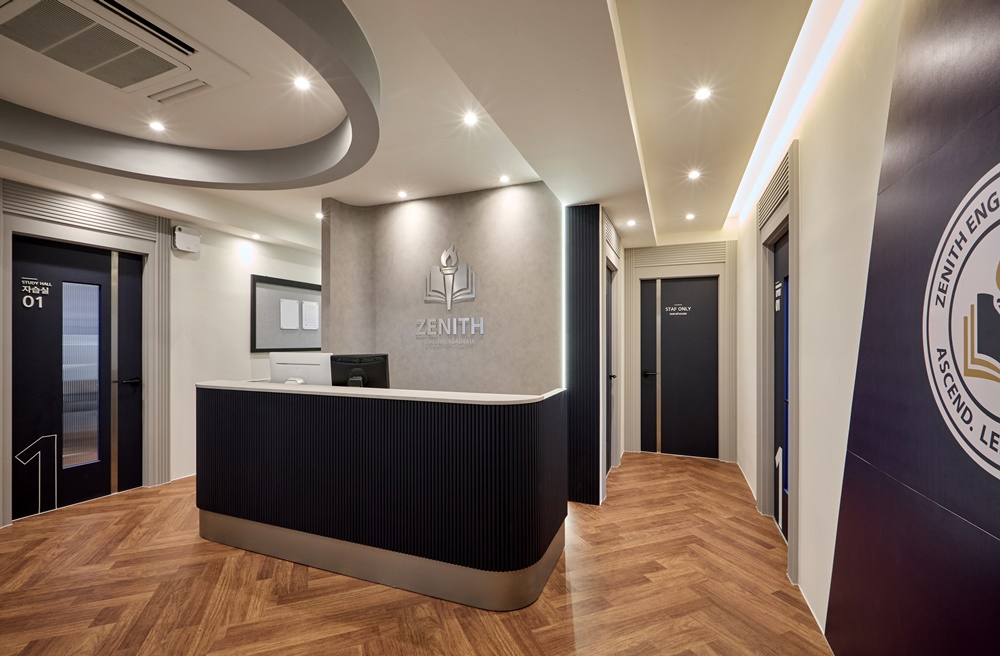 그 위에 프리미엄급 아크릴과 LED를 조합한 'ZENITH' 로고 사인을 설치하여, 조명을 받았을 때 사인의 윤곽이 뚜렷해지며 전문적인 교육 기관의 이미지를 강화했습니다.