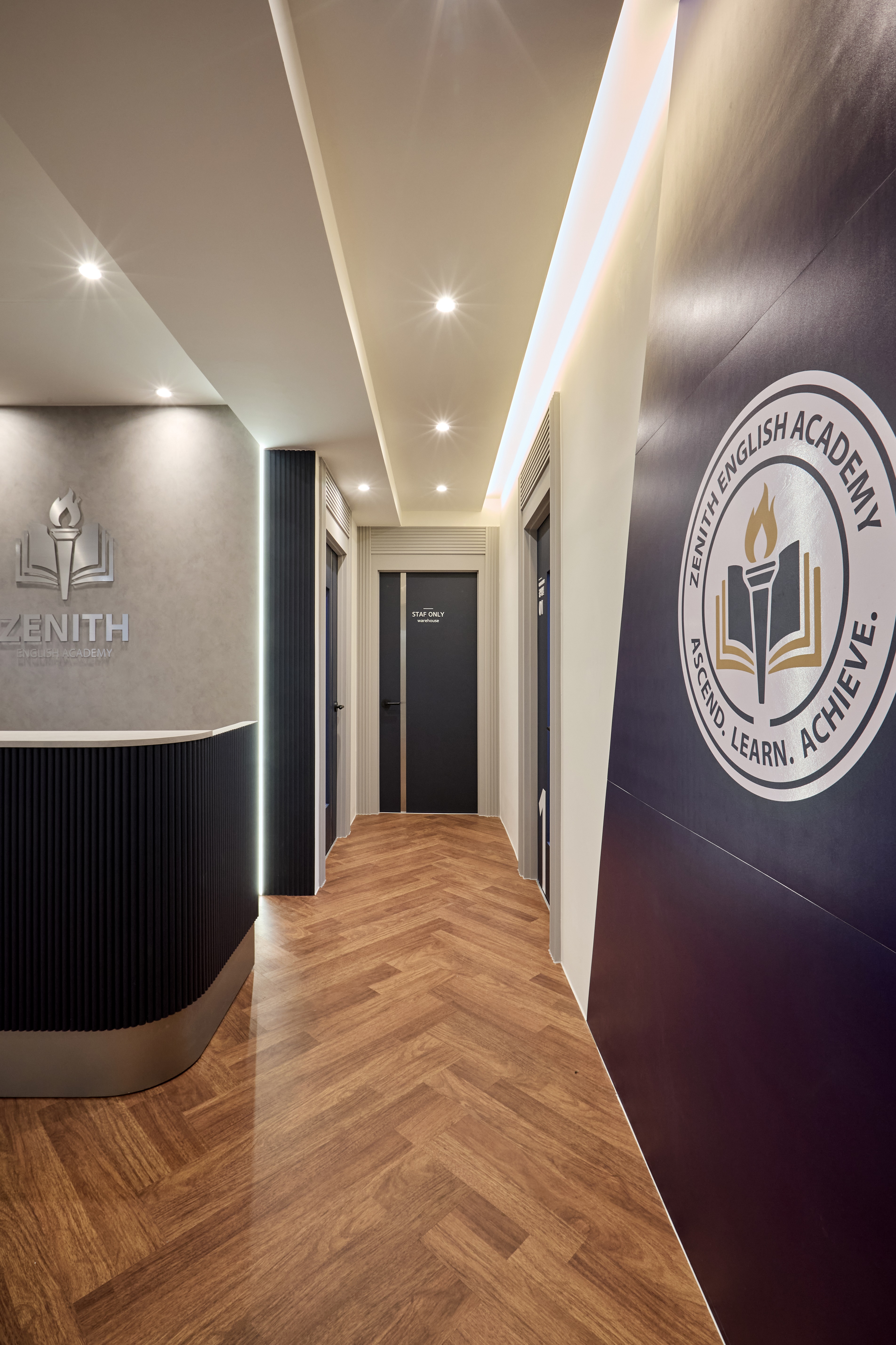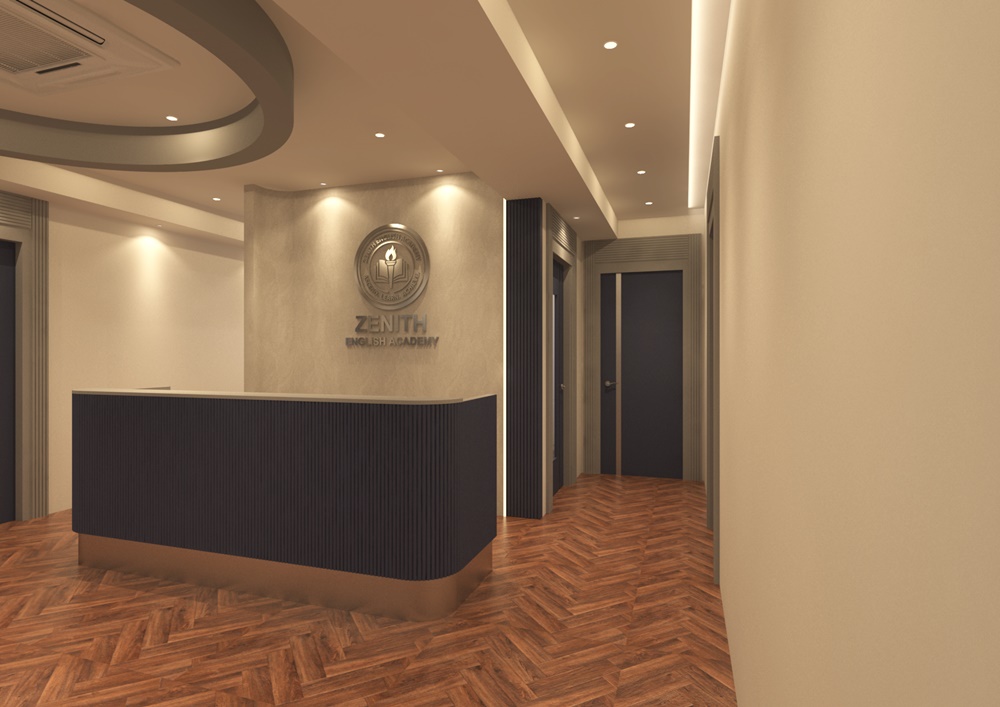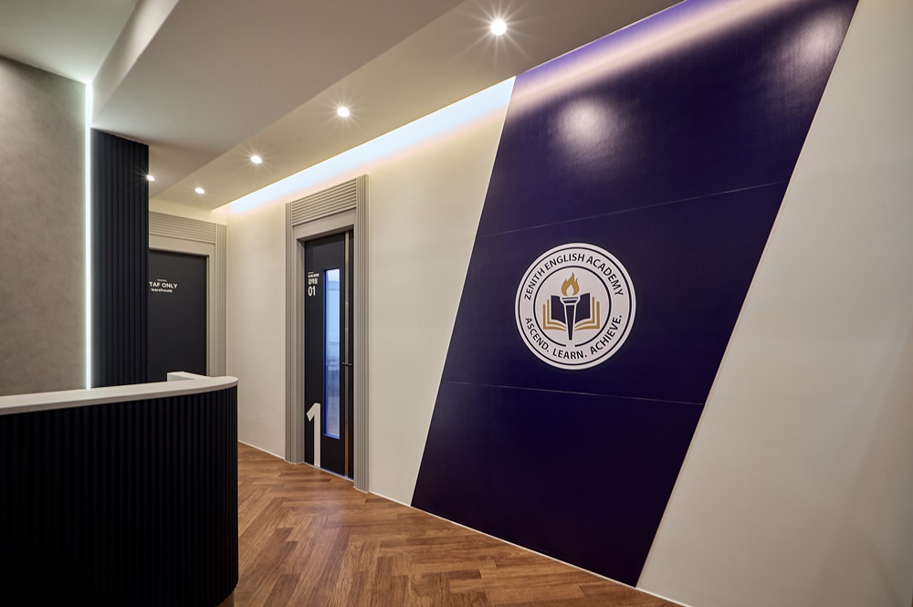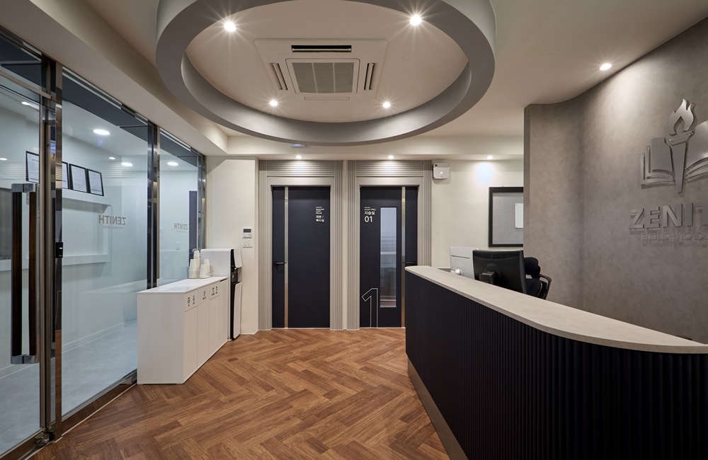 그 위에 프리미엄급 아크릴과 LED를 조합한 'ZENITH' 로고 사인을 설치하여, 조명을 받았을 때 사인의 윤곽이 뚜렷해지며 전문적인 교육 기관의 이미지를 강화했습니다.