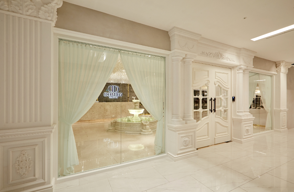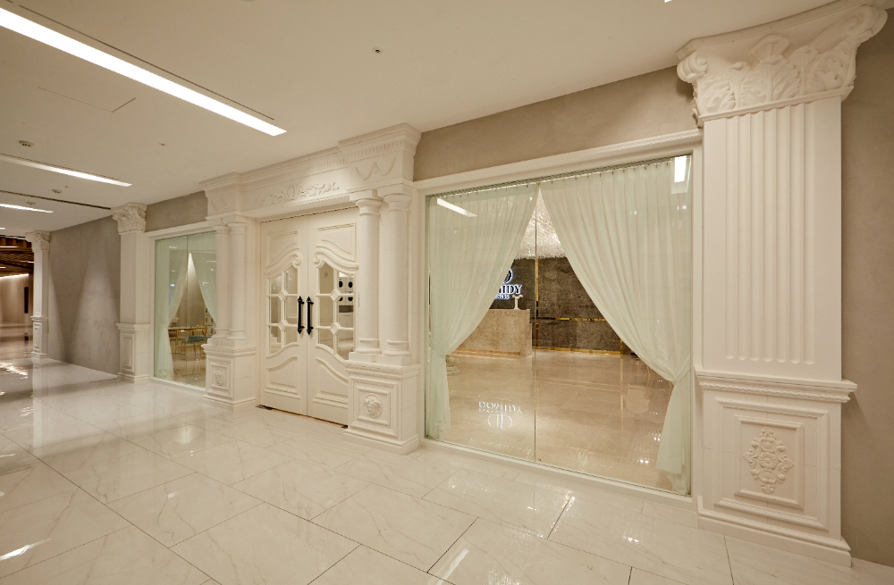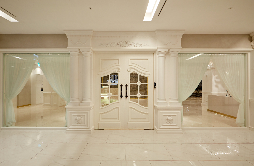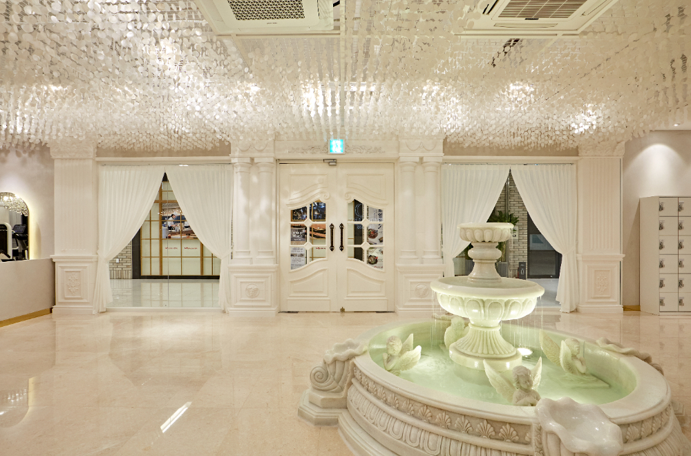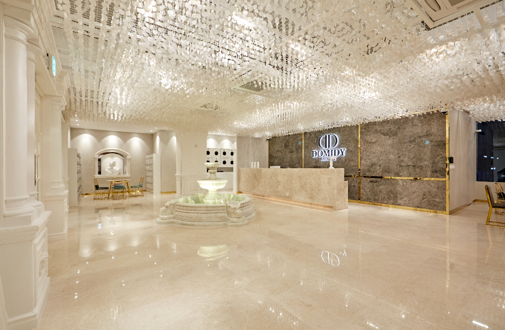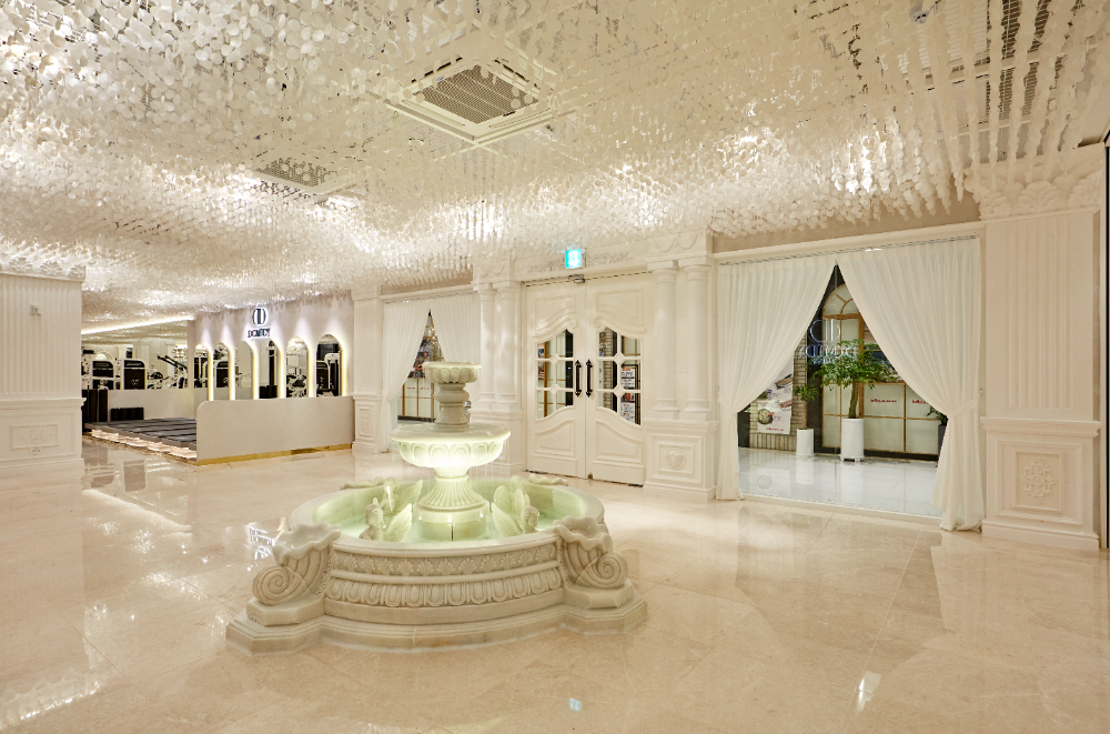 곳곳에 위치한 샹들리에와 하얀색 조명은