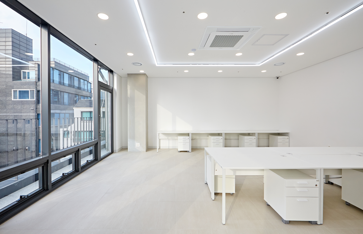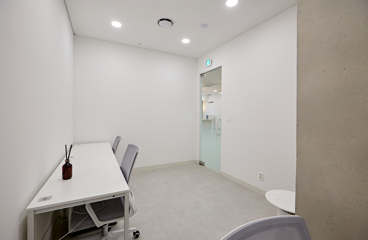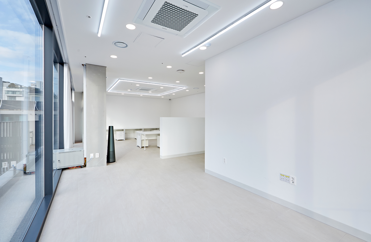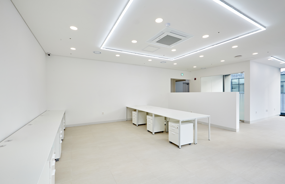 밝은 조명은 공간을 넓어 보이게 하고 업무 효율을 높여주는데 천장에 매입등을 설치하거나, 스포트라이트를 활용하여 강조하고자 하는 부분을 밝게 비추는 것도 좋은 방법 입니다.