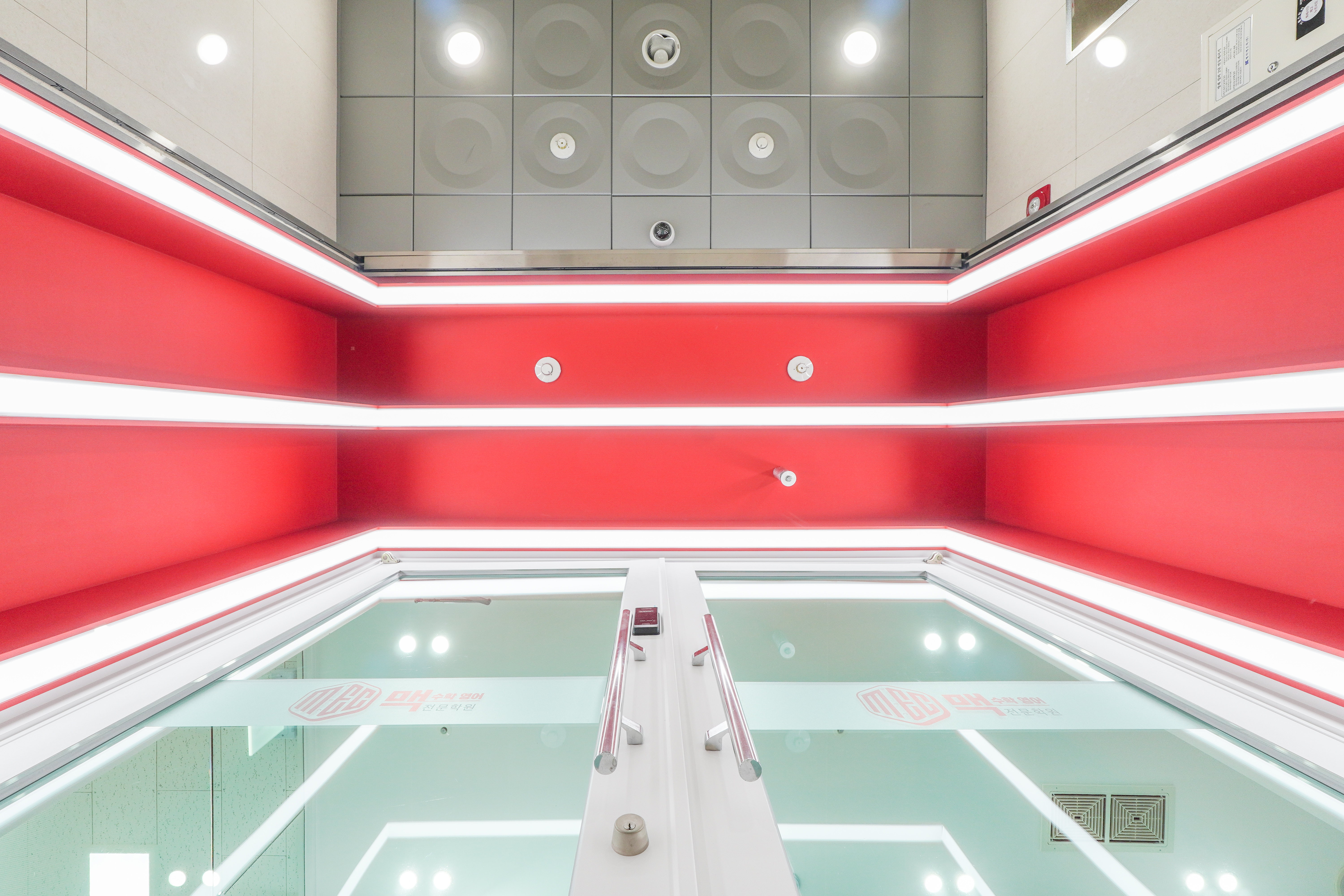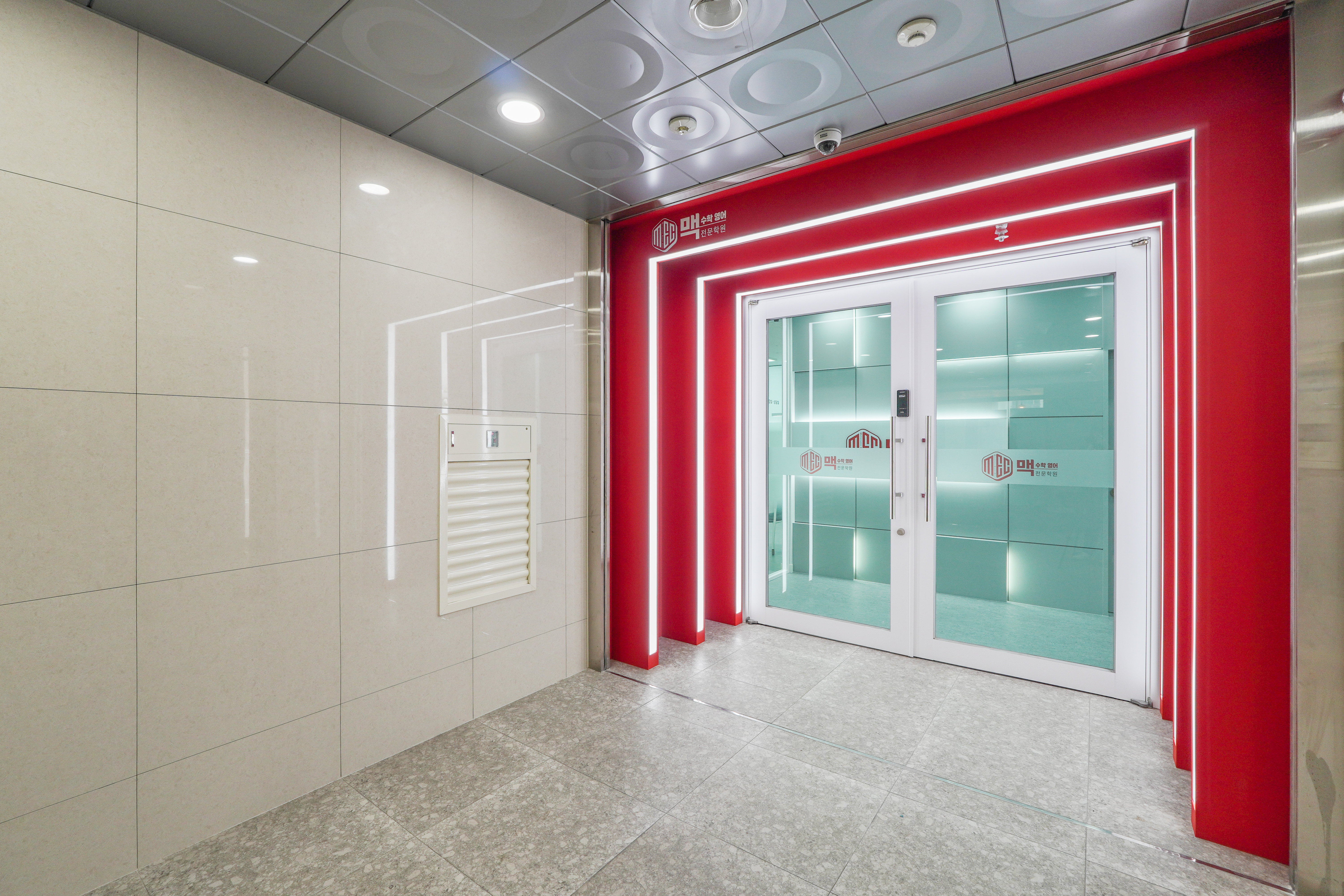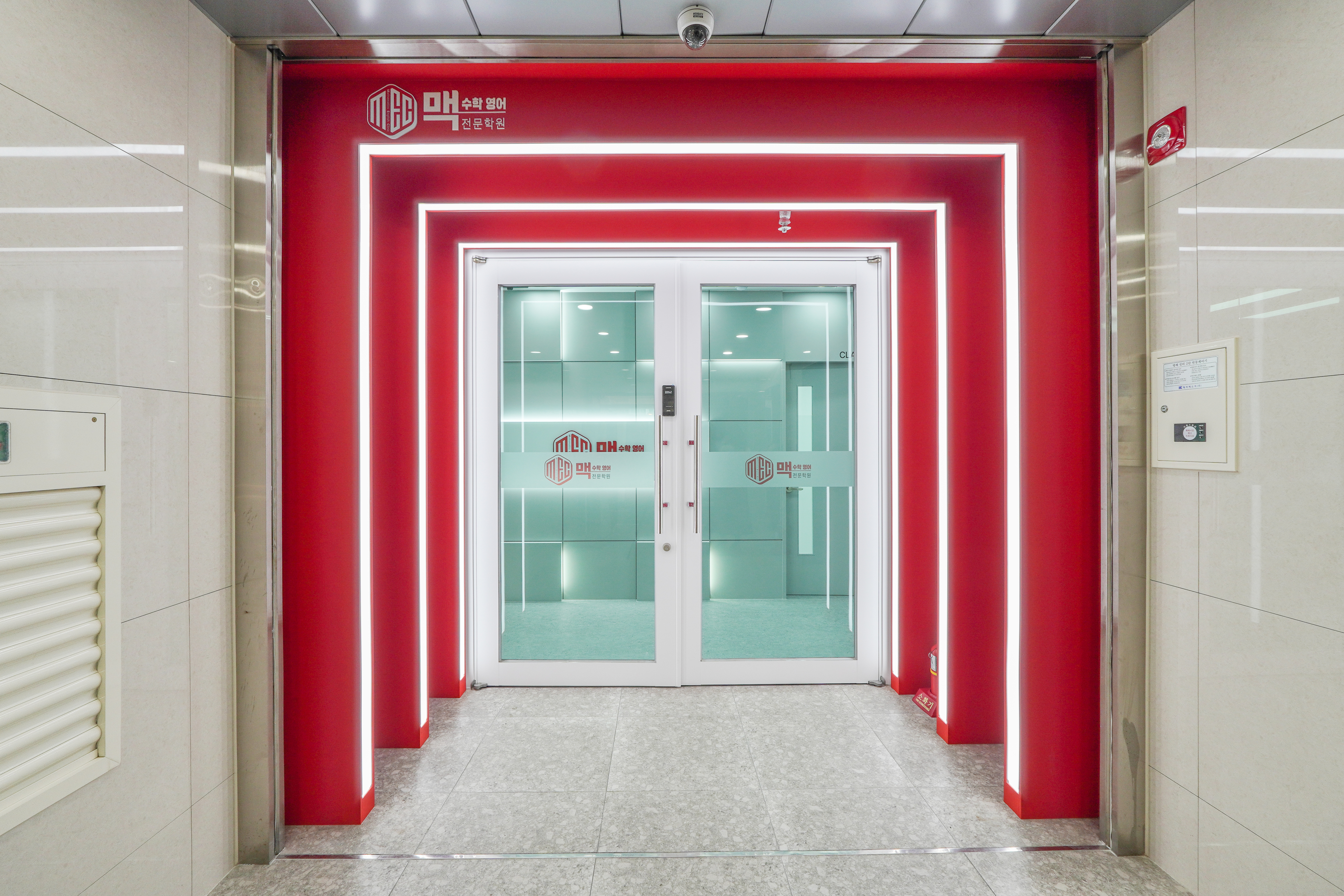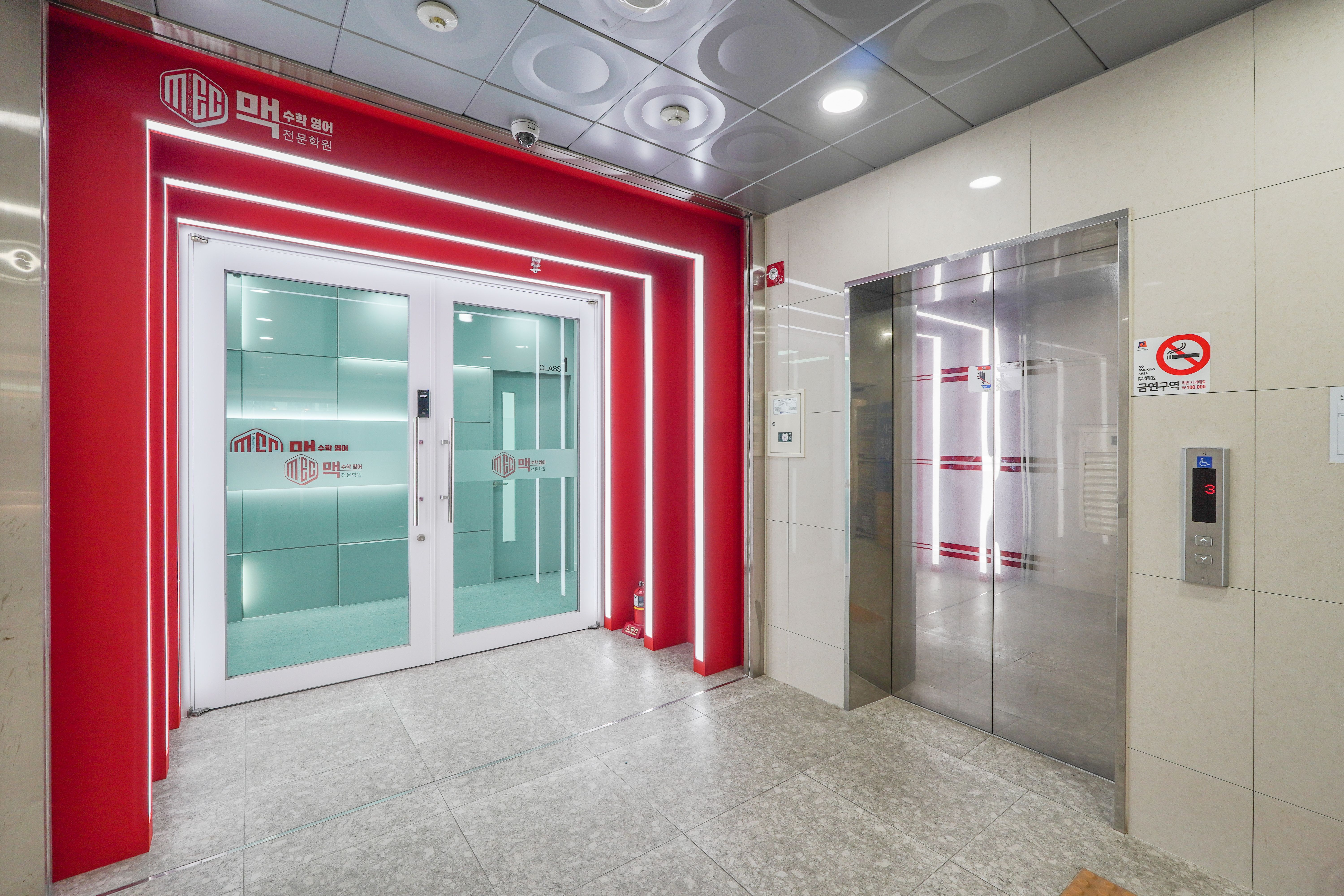 학원 얼굴과도 같은 공간을 레드 컬러와 화이트를