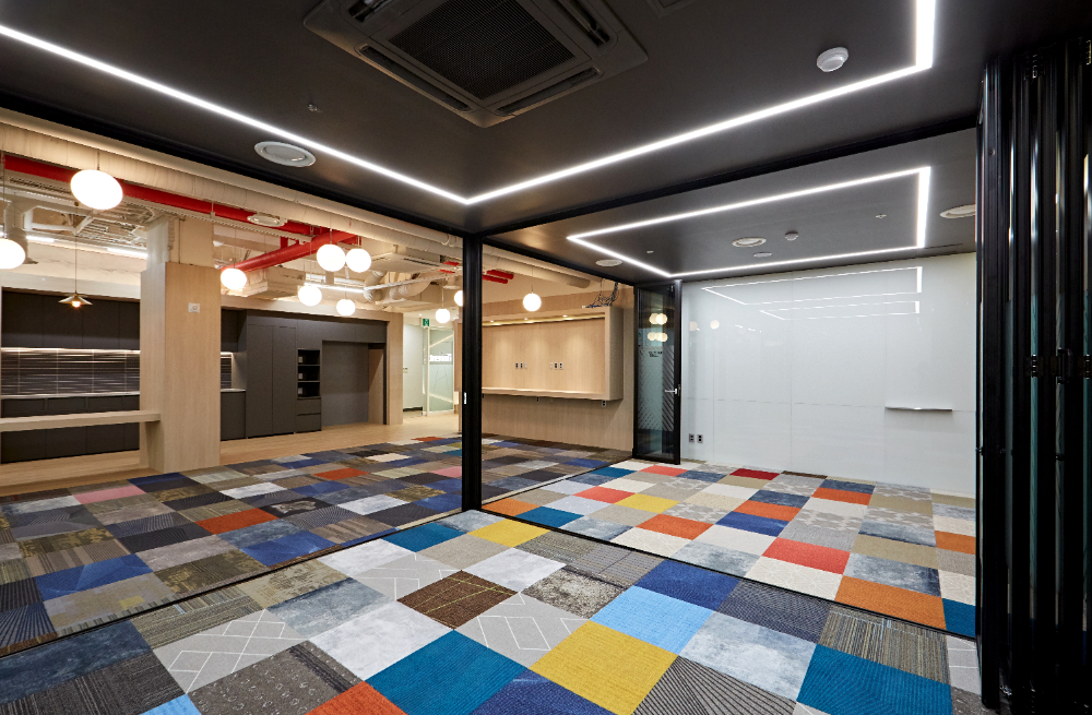바닥 마감재에 다양한 컬러를 넣어 포인트를