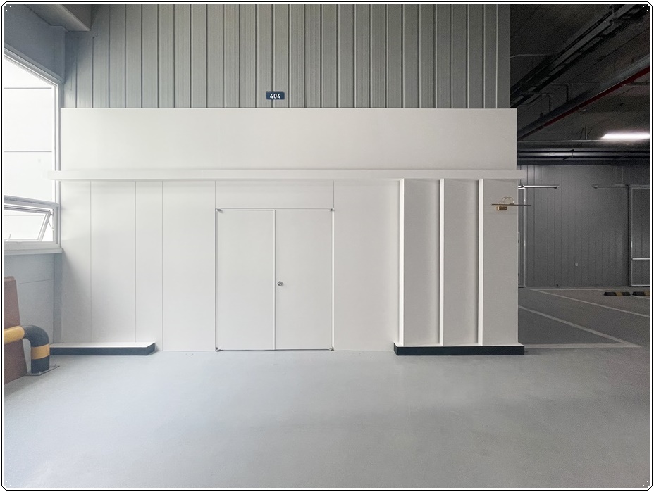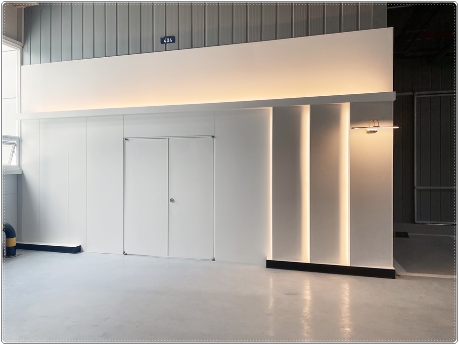 오늘 소개해드릴 사례는 시공이 완료된 현장으로 주차장에서 진입을 하는 특징을 가진 위치의 사무실입니다. 주차장의 어두운 공간에서 시인성을 높이되 주변과 어울리는 디자인을 적용해야했기에 주변의 아이보리 패널의 느낌을 살린 면디자인을 적용하고 화이트로 도장해 세련되게 만들어드렸습니다.