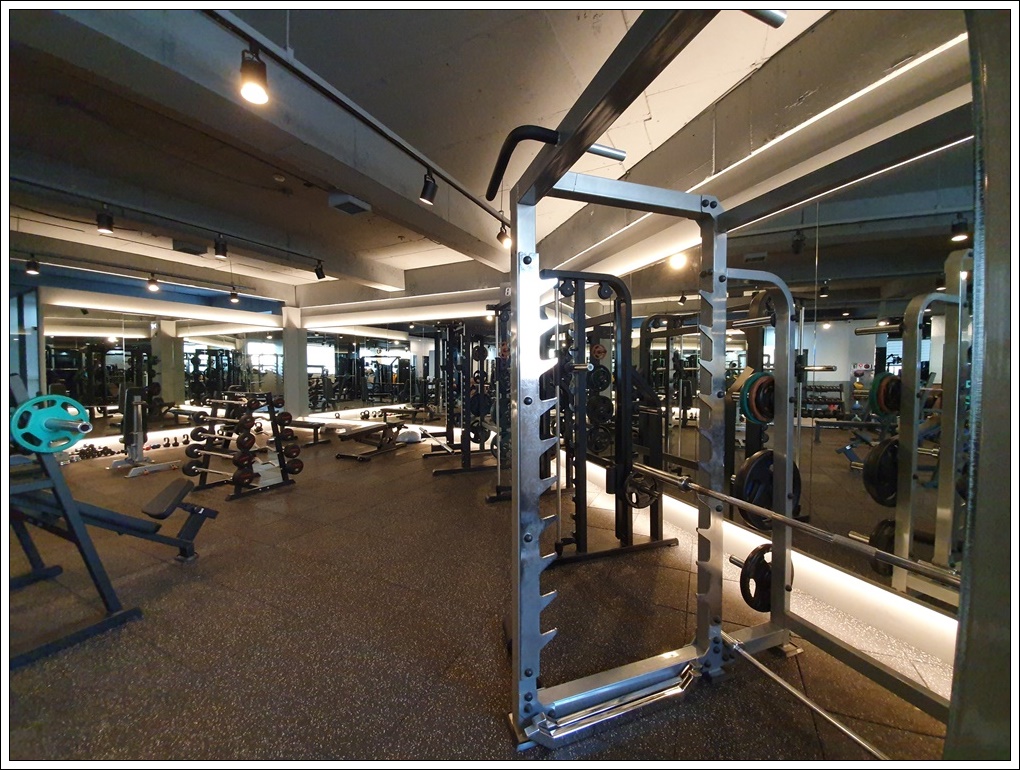 신체별 향상에 집중하는 프리웨이트존은 가장 안쪽에 배치해 운동에만 집중할 수 있도록 배려했습니다. 프리웨이트존에서의 운동은 개인운동과 1:1PT가 주를 이루기 때문에 중량 운동이 많은 점을 감안해 바닥에는 충격을 흡수하는 고무 매트를 깔아 부상과 소음을 방지하도록 했습니다.