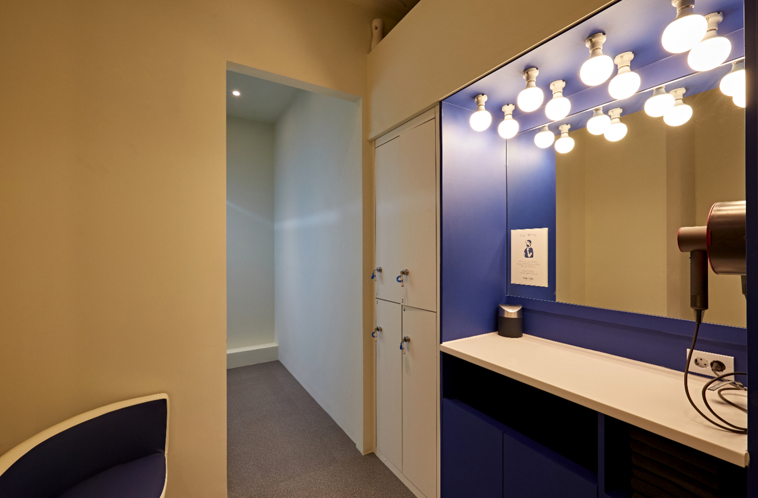 여성 탈의실은 우선 남자 탈의실보다는 화장대의 크기를 확대하였으며, 양쪽에도 캐비넷을 설치하여서 더욱 많은 분들이 사용하실 수 있도록 도와드렸습니다. 그리고 상단에는 수 많은 전구로 시야를 밝혀주었으며 벽면에 부착 된 드라이기를 통해 편하게 이용하실 수 있는데요.